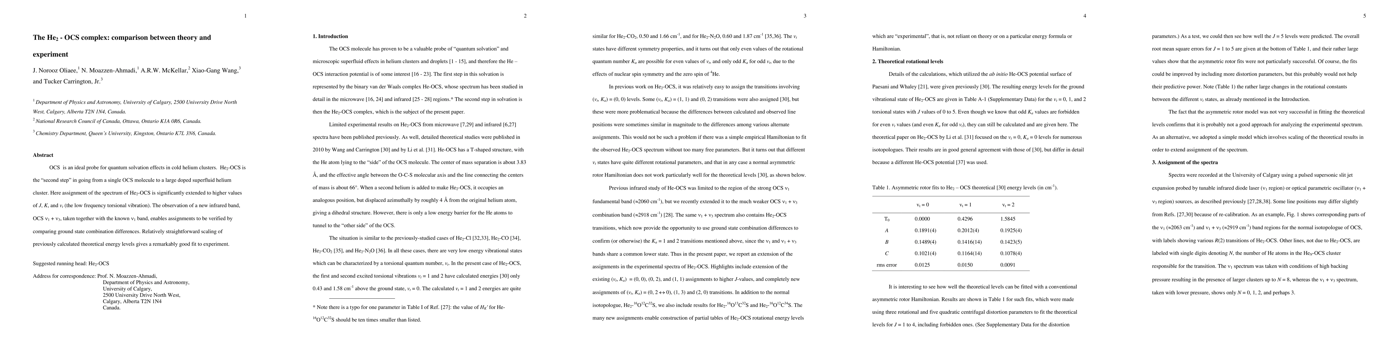 Researchers assigned a new infrared band to He2-OCS, extending its spectrum beyond previously known values of J, K, and vt. This assignment was verified through comparison with theoretical energy levels, providing a remarkably good fit to the experiment.
