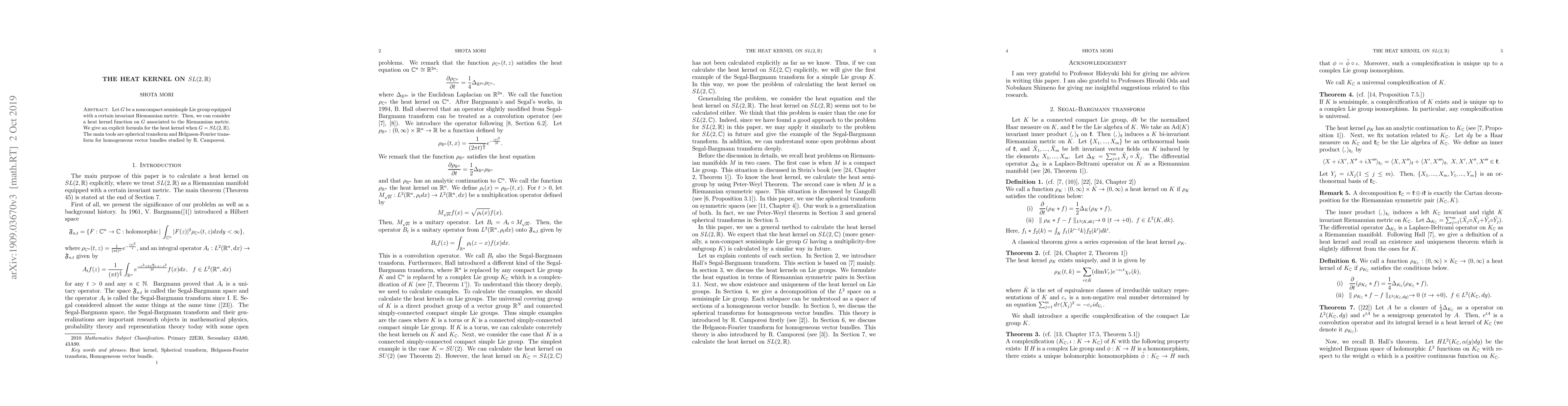 This research paper provides an explicit formula for the heat kernel function on SL(2,π), a noncompact semisimple Lie group, using tools such as spherical transform and Helgason-Fourier transform.