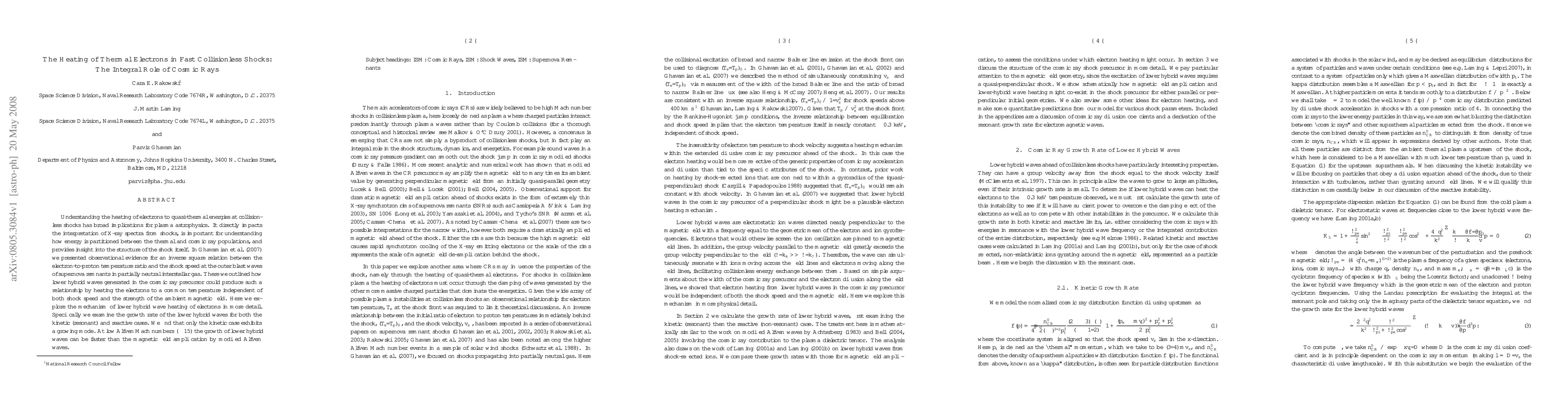 Understanding the heating of electrons to quasi-thermal energies at collisionless shocks has broad implications for plasma astrophysics. It directly impacts the interpretation of X-ray spectra from shocks, is important for understanding how energy is partitioned between the thermal and cosmic ray populations, and provides insight into the structure of the shock itself. In Ghavamian, Laming & Rakowski (2007) we presented observational evidence for an inverse square relation between the electron-to-proton temperature ratio and the shock speed at the outer blast waves of supernova remnants in partially neutral interstellar gas. There we outlined how lower hybrid waves generated in the cosmic ray precursor could produce such a relationship by heating the electrons to a common temperature independent of both shock speed and the strength of the ambient magnetic field. Here we explore the mechanism of lower hybrid wave heating of electrons in more detail. Specifically we examine the growth rate of the lower hybrid waves for both the kinetic (resonant) and reactive cases. We find that only the kinetic case exhibits a growing mode. At low Alfv\'en Mach numbers (~15) the growth of lower hybrid waves can be faster than the magnetic field amplification by modified Alfv\'en waves.