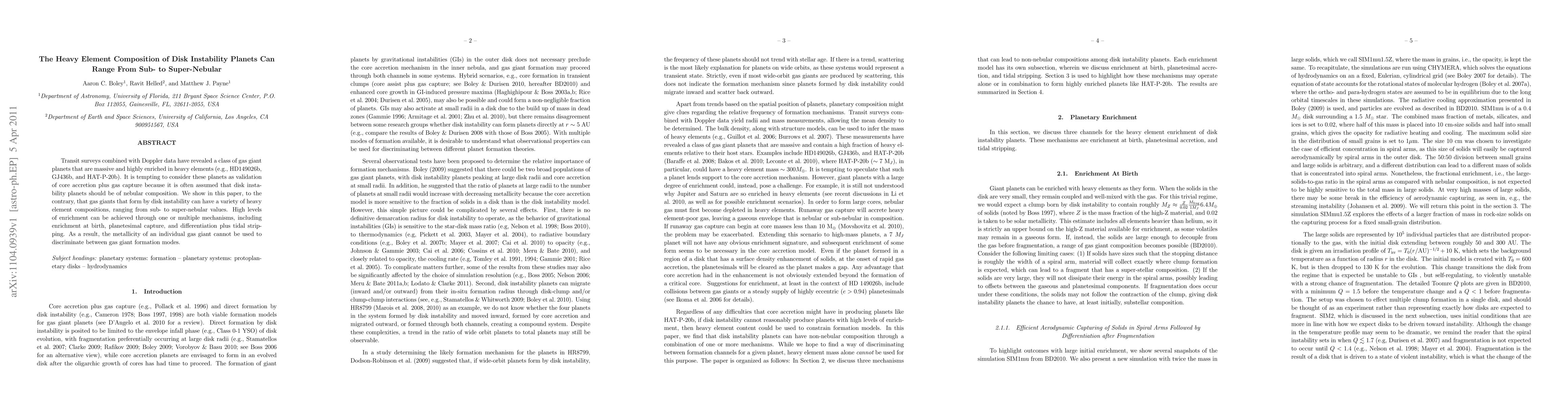 Transit surveys combined with Doppler data have revealed a class of gas giant planets that are massive and highly enriched in heavy elements (e.g., HD149026b, GJ436b, and HAT-P-20b). It is tempting to consider these planets as validation of core accretion plus gas capture because it is often assumed that disk instability planets should be of nebular composition. We show in this paper, to the contrary, that gas giants that form by disk instability can have a variety of heavy element compositions, ranging from sub- to super-nebular values. High levels of enrichment can be achieved through one or multiple mechanisms, including enrichment at birth, planetesimal capture, and differentiation plus tidal stripping. As a result, the metallicity of an individual gas giant cannot be used to discriminate between gas giant formation modes.