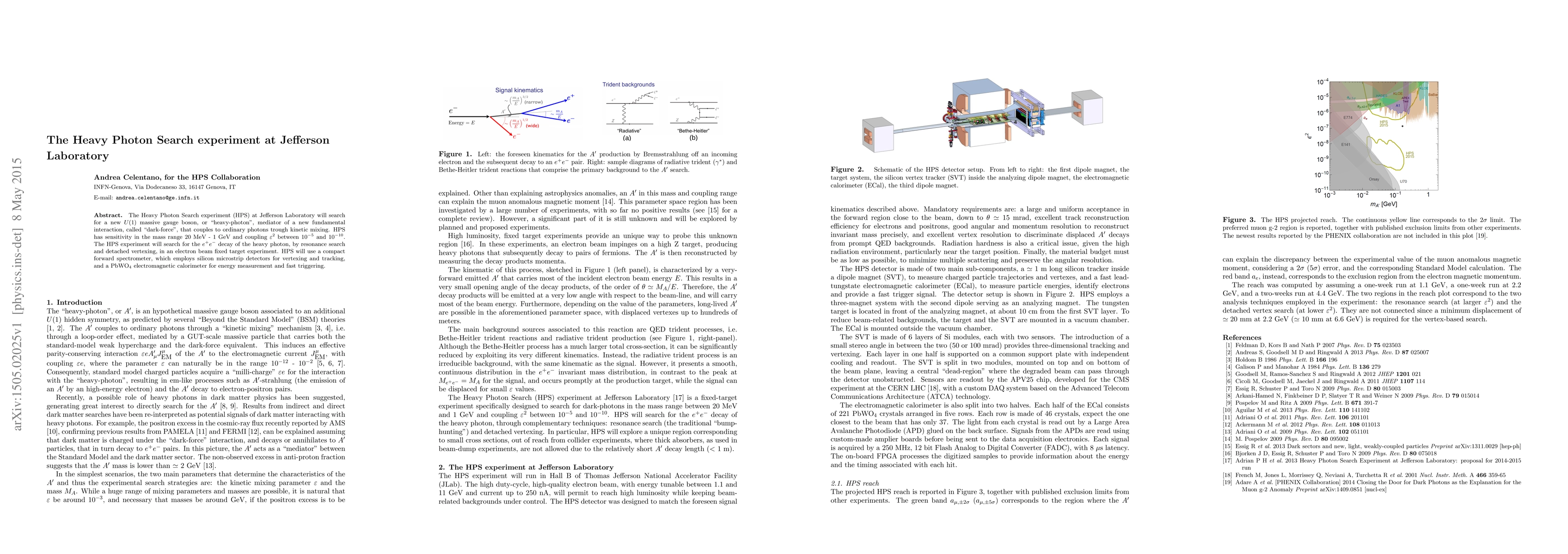 The Heavy Photon Search (HPS) experiment at Jefferson Laboratory aims to detect a new $U(1)$ massive gauge boson, or "heavy-photon," that mediates a "dark-force" interaction through kinetic mixing with ordinary photons. The experiment will utilize a compact forward spectrometer with silicon microstrip detectors and a PbWO$_4$ electromagnetic calorimeter to search for the $e^+e^-$ decay of the heavy photon in the mass range of 20 MeV to 1 GeV and coupling strengths between $10^{-5}$ and $10^{-10}$.