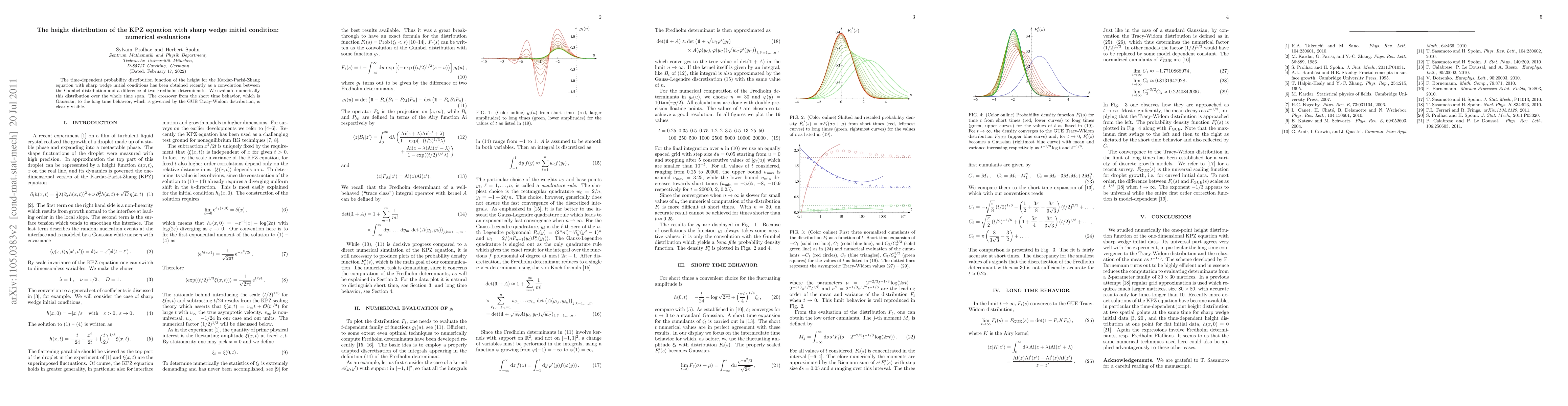 This paper numerically evaluates the time-dependent probability distribution of height for the KPZ equation with sharp wedge initial conditions, revealing a crossover from Gaussian to GUE Tracy-Widom distribution as time progresses. The results confirm the theoretical convolution involving Gumbel distribution and Fredholm determinants.