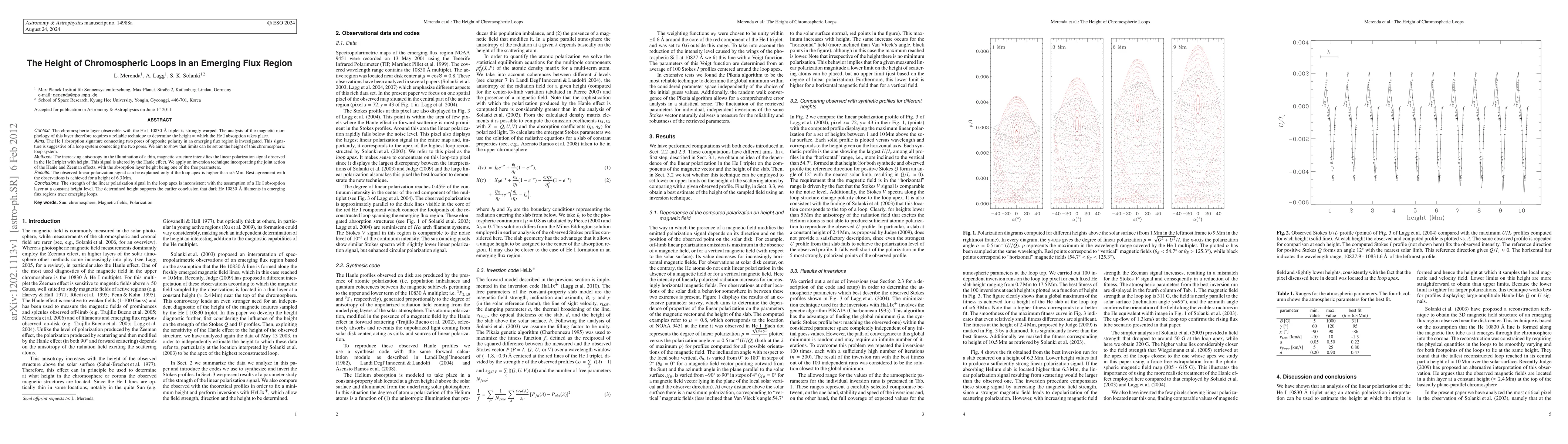 Context. The chromospheric layer observable with the He I 10830 {\AA} triplet is strongly warped. The analysis of the magnetic morphology of this layer therefore requires a reliable technique to determine the height at which the He I absorption takes place. Aims. The He I absorption signature connecting two pores of opposite polarity in an emerging flux region is investigated. This signature is suggestive of a loop system connecting the two pores. We aim to show that limits can be set on the height of this chromospheric loop system. Methods. The increasing anisotropy in the illumination of a thin, magnetic structure intensifies the linear polarization signal observed in the He I triplet with height. This signal is altered by the Hanle effect. We apply an inversion technique incorporating the joint action of the Hanle and Zeeman effects, with the absorption layer height being one of the free parameters. Results. The observed linear polarization signal can be explained only if the loop apex is higher than \approx5 Mm. Best agreement with the observations is achieved for a height of 6.3 Mm. Conclusions. The strength of the linear polarization signal in the loop apex is inconsistent with the assumption of a He I absorption layer at a constant height level. The determined height supports the earlier conclusion that dark He 10830 {\AA} filaments in emerging flux regions trace emerging loops.