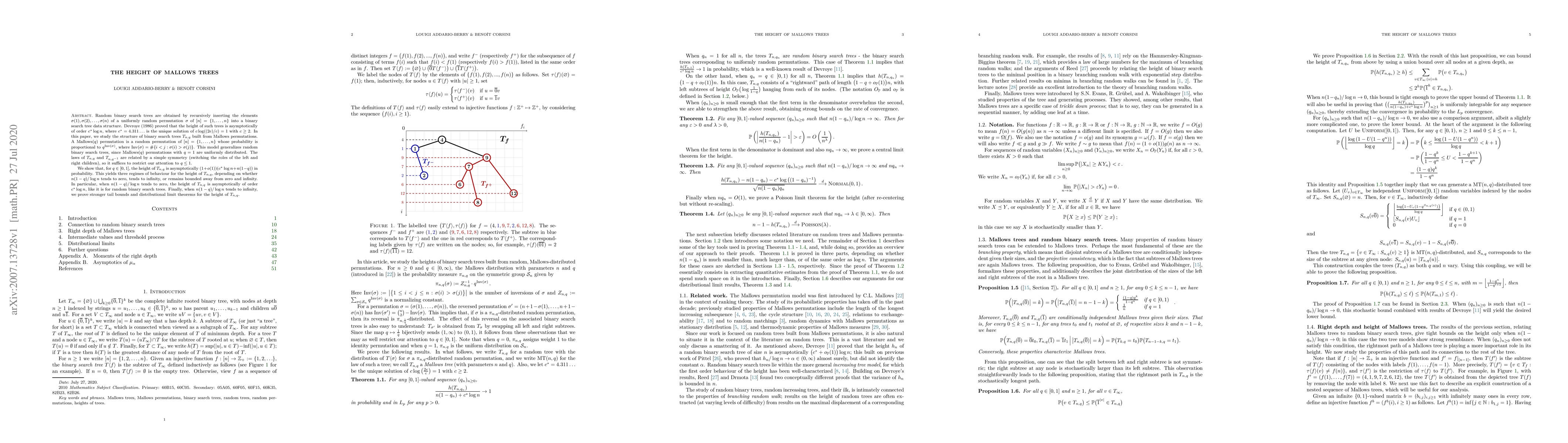 This paper studies the height of binary search trees constructed from Mallows permutations, which generalize random binary search trees. It demonstrates that the height of these trees, $T_{n,q}$, asymptotically follows $(1+o(1))(c^* \log n + n(1-q))$, revealing three height regimes based on the ratio $n(1-q)/\log n$.