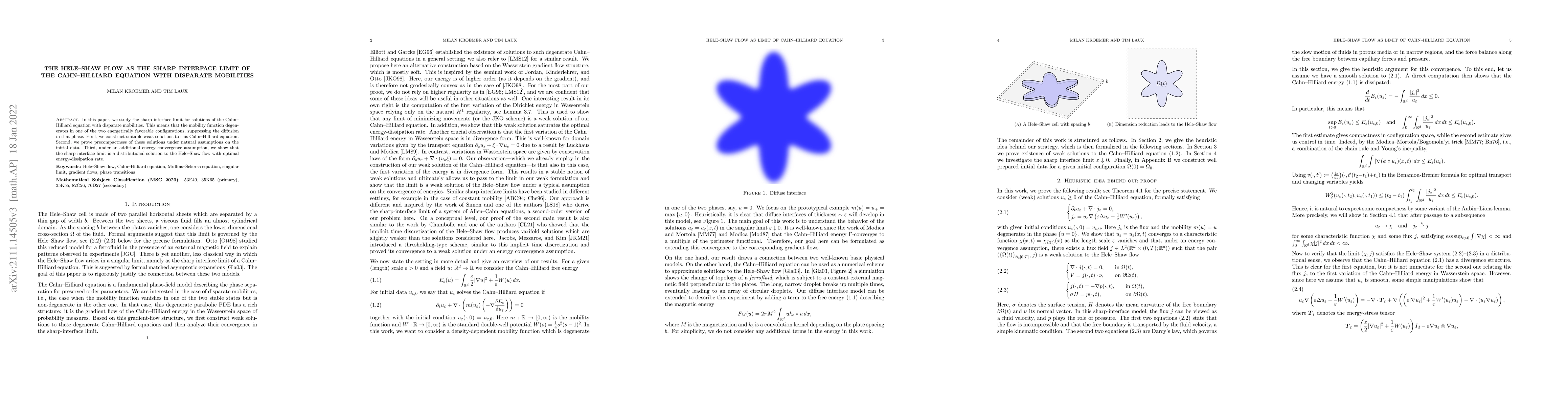 This paper investigates the sharp interface limit of the Cahn-Hilliard equation with different mobilities, showing that as one phase's mobility approaches zero, the solution converges to a Hele-Shaw flow model, with rigorous proofs of precompactness and optimal energy-dissipation rate.