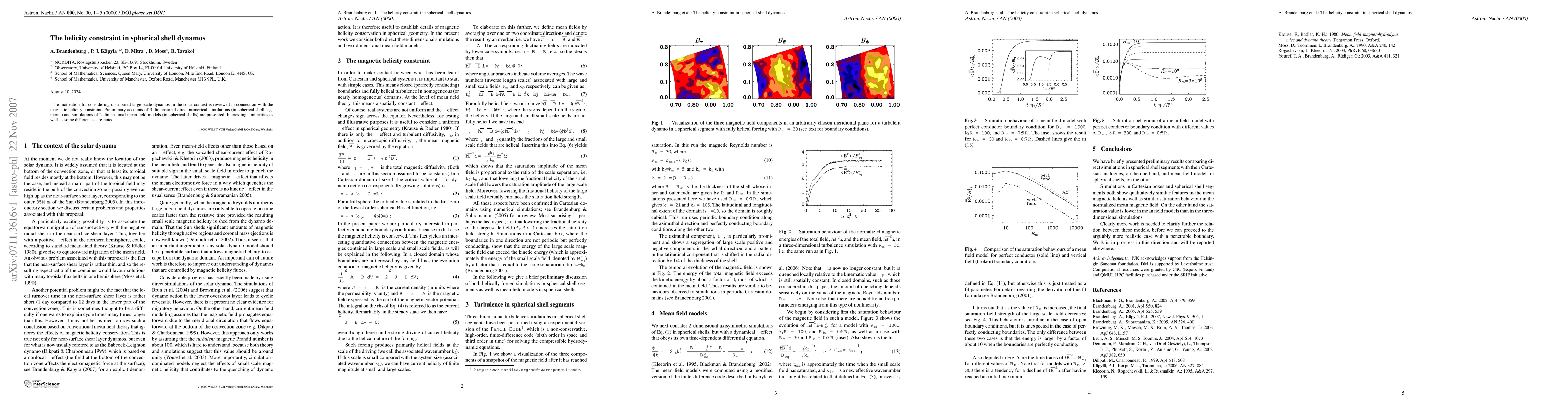 This paper reviews the magnetic helicity constraint in the context of distributed large-scale dynamos, presenting preliminary results from 3D simulations in spherical shell segments and 2D mean field models, noting both similarities and differences.