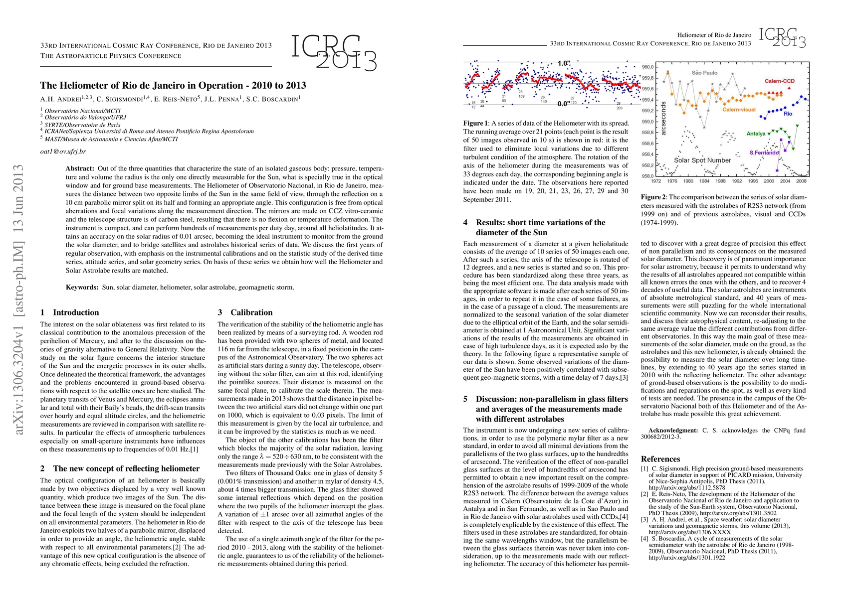 The Heliometer of Rio de Janeiro Observatory measures the solar diameter with high accuracy, achieving 0.01 arcsec precision, and is used to bridge historical satellite and astrolabe data series. The instrument's calibrations and statistical analysis of its time series show good agreement with Solar Astrolabe results.