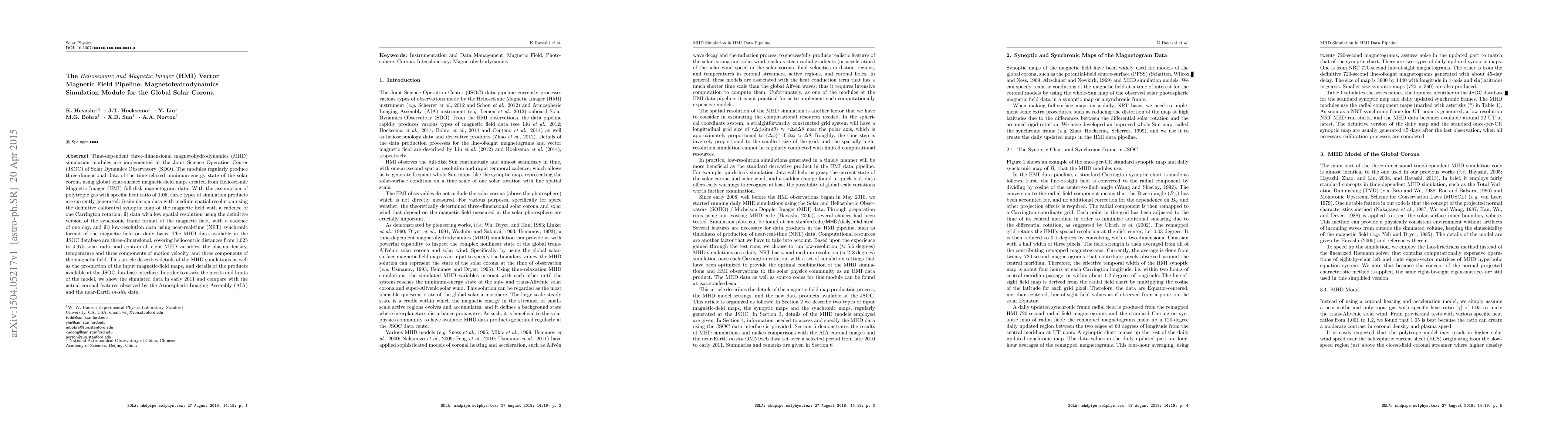This paper details the implementation of time-dependent three-dimensional magnetohydrodynamics (MHD) simulation modules at the Joint Science Operation Center (JSOC) of the Solar Dynamics Observatory (SDO), which generate three-dimensional data of the solar corona's minimum-energy state using HMI magnetic field maps. The MHD simulations produce various resolutions of data, including medium and low-resolution, and are compared with observational data from AIA and in-situ measurements.