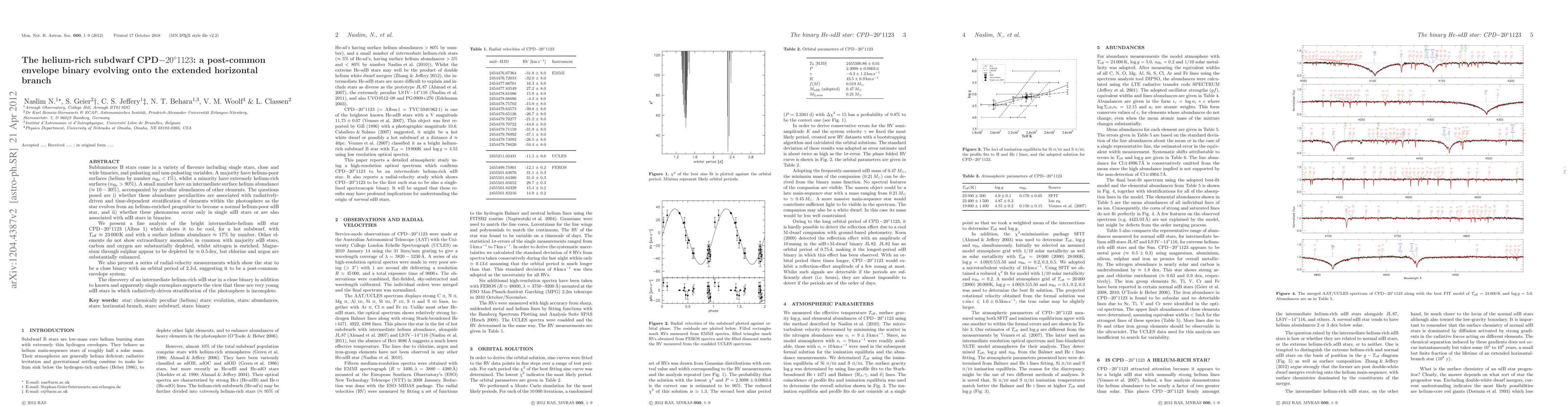 The paper analyzes the helium-rich subdwarf CPD-20 1123, revealing it to be an intermediate-helium sdB star in a close binary system with an orbital period of 2.3 days. The findings suggest that CPD-20 1123 is a post-common envelope binary, supporting the theory that these stars are young and exhibit incomplete radiatively-driven stratification.