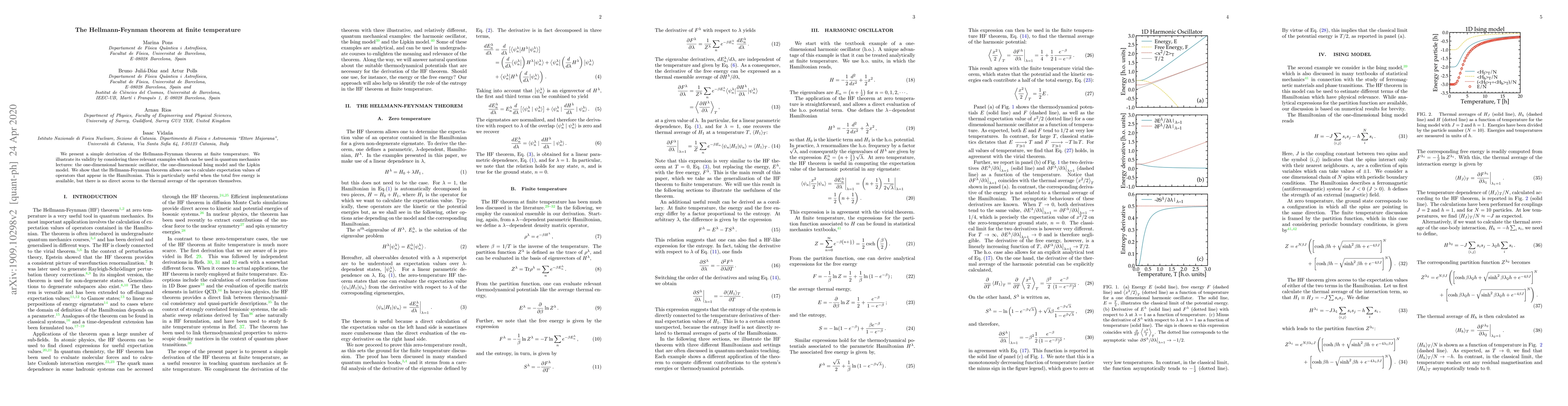 The Hellmann-Feynman theorem is derived at finite temperature, demonstrating its applicability in calculating expectation values of Hamiltonian operators using total free-energy data. This is illustrated through examples including the one-dimensional harmonic oscillator, Ising model, and Lipkin model.