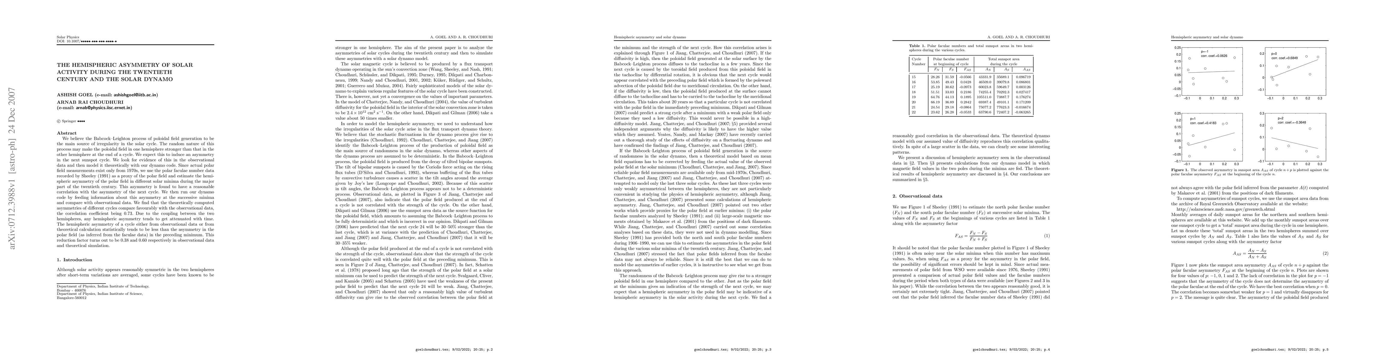 Research investigates hemispheric asymmetry in solar activity during the 20th century and its relationship to the solar dynamo, finding a correlation between asymmetries in successive cycles.