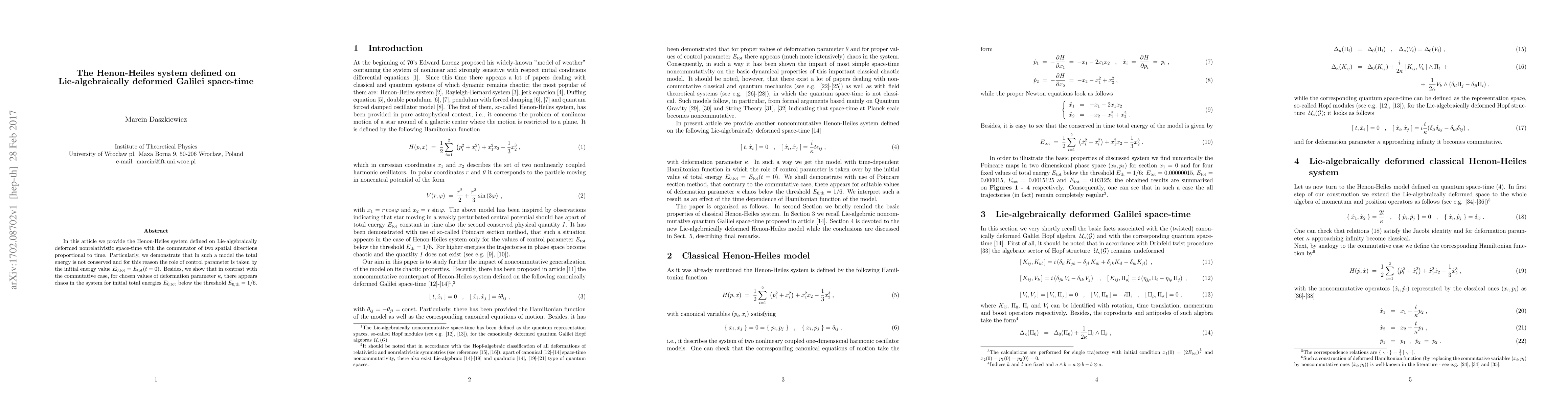 This paper defines the Henon-Heiles system on Lie-algebraically deformed nonrelativistic space-time, where the total energy is not conserved. It shows that chaos emerges for initial total energies below a threshold value, contrasting with the commutative case.