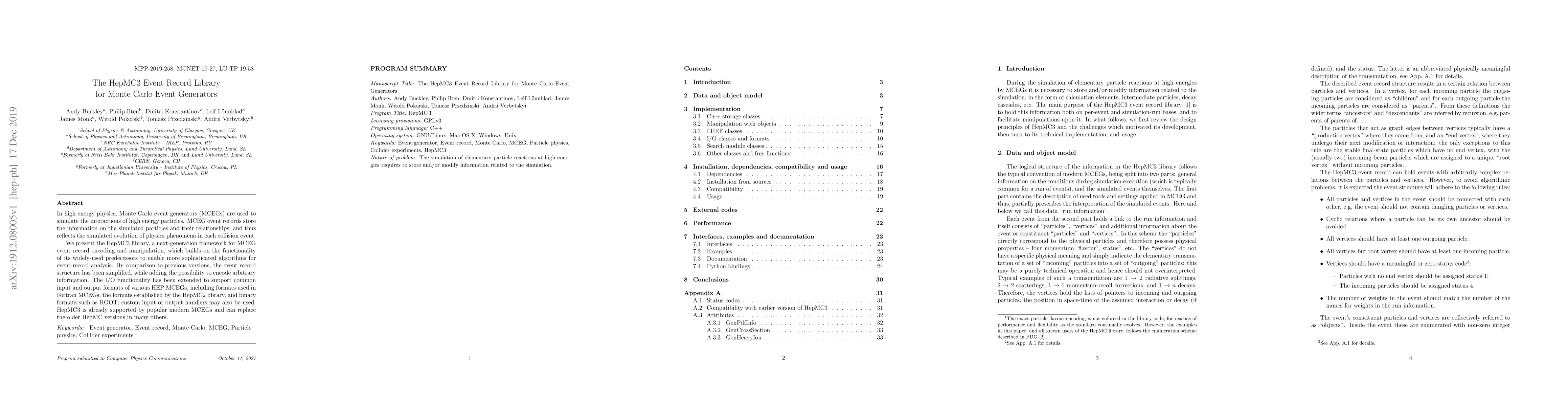HepMC3 is a next-generation framework for encoding and manipulating Monte Carlo event generator records in high-energy physics, offering simplified event structures and extended I/O capabilities to support various formats, enhancing the analysis of simulated particle interactions. It is already integrated into popular modern MCEGs and aims to replace older HepMC versions.