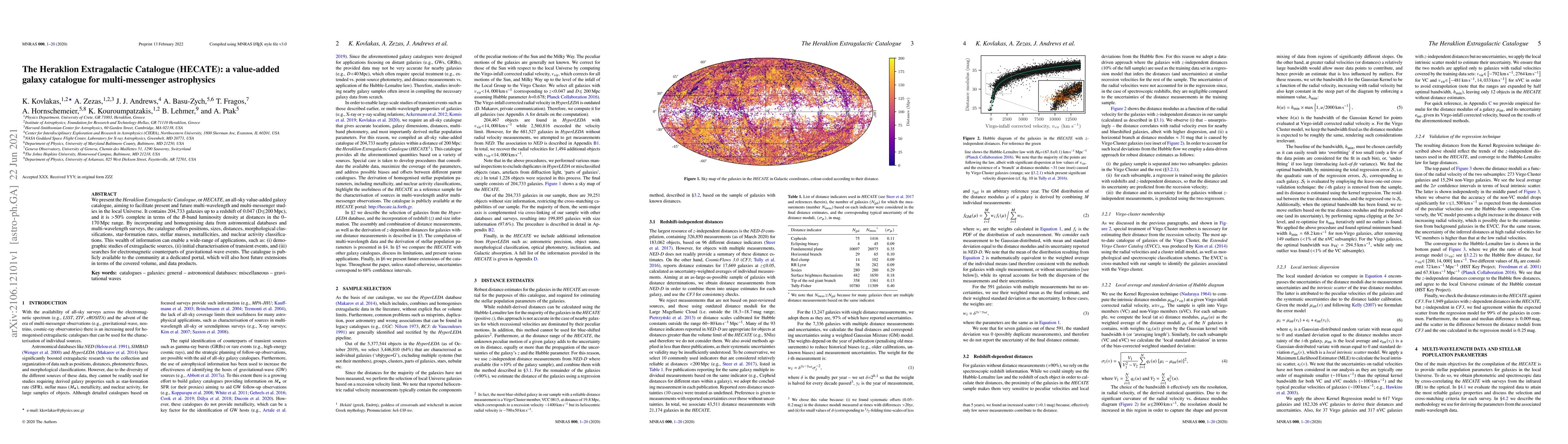 The Heraklion Extragalactic Catalogue (HECATE) is a comprehensive, all-sky galaxy catalogue designed to support multi-messenger astrophysics, featuring detailed data on 204,733 galaxies up to a redshift of 0.047. It is publicly accessible and intended to facilitate multi-wavelength and multi-messenger studies in the local Universe.