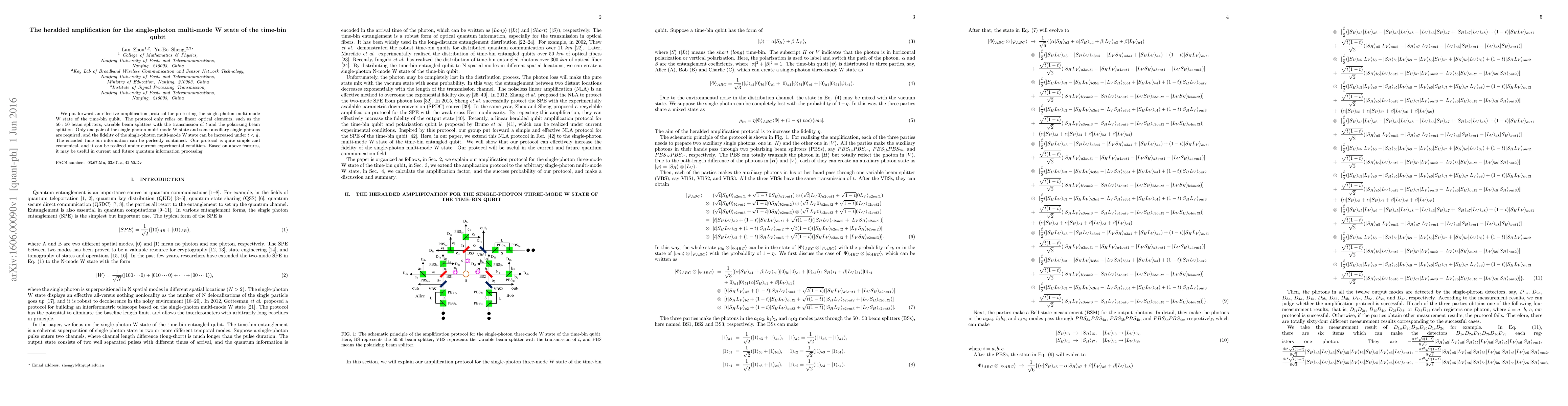 This paper proposes a simple and economical amplification protocol for enhancing the fidelity of single-photon multi-mode W states using linear optical elements without requiring complex setups. The protocol maintains the encoded time-bin information and is feasible under current experimental conditions, potentially aiding quantum information processing.
