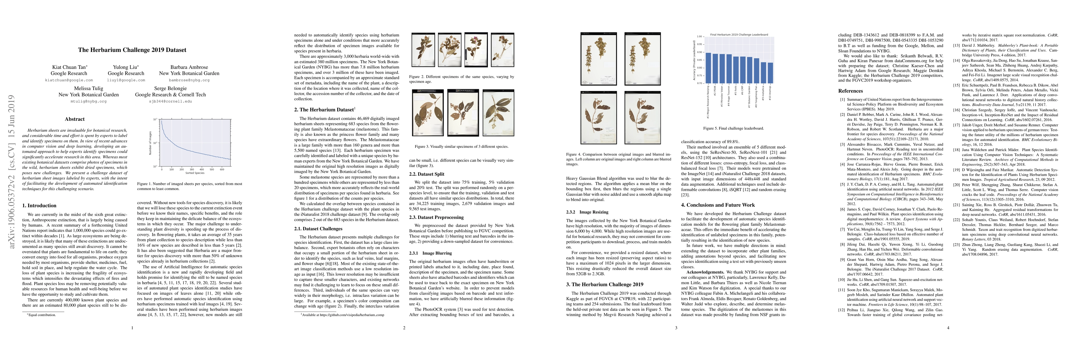 Herbarium sheets are invaluable for botanical research, and considerable time and effort is spent by experts to label and identify specimens on them. In view of recent advances in computer vision and deep learning, developing an automated approach to help experts identify specimens could significantly accelerate research in this area. Whereas most existing botanical datasets comprise photos of specimens in the wild, herbarium sheets exhibit dried specimens, which poses new challenges. We present a challenge dataset of herbarium sheet images labeled by experts, with the intent of facilitating the development of automated identification techniques for this challenging scenario.