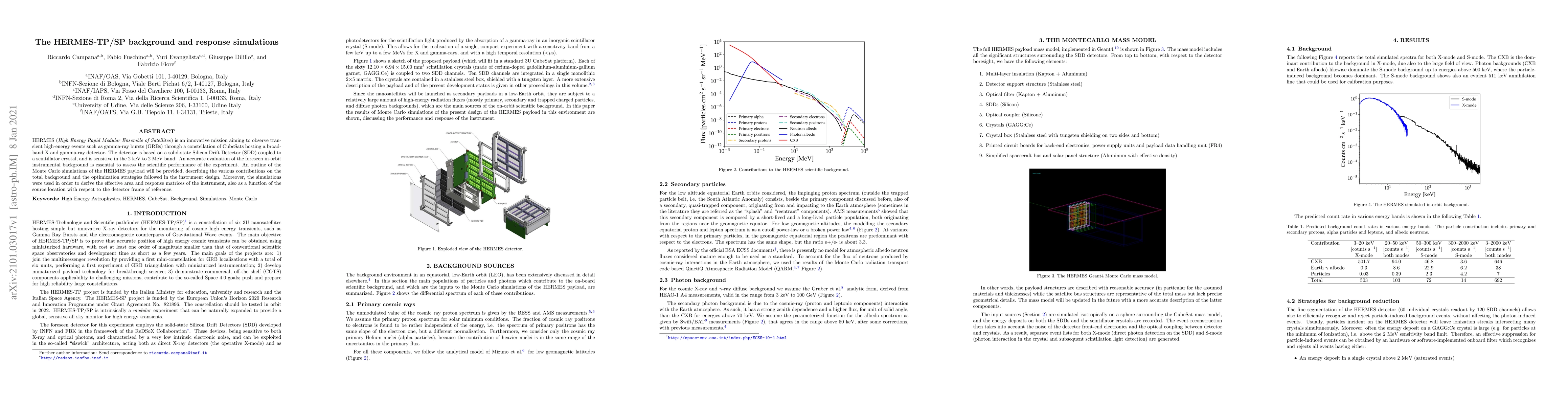 The paper details Monte Carlo simulations for the HERMES CubeSat mission's detector, which observes high-energy events like GRBs. It outlines background contributions, design optimization, and derivation of effective area and response matrices for performance assessment.