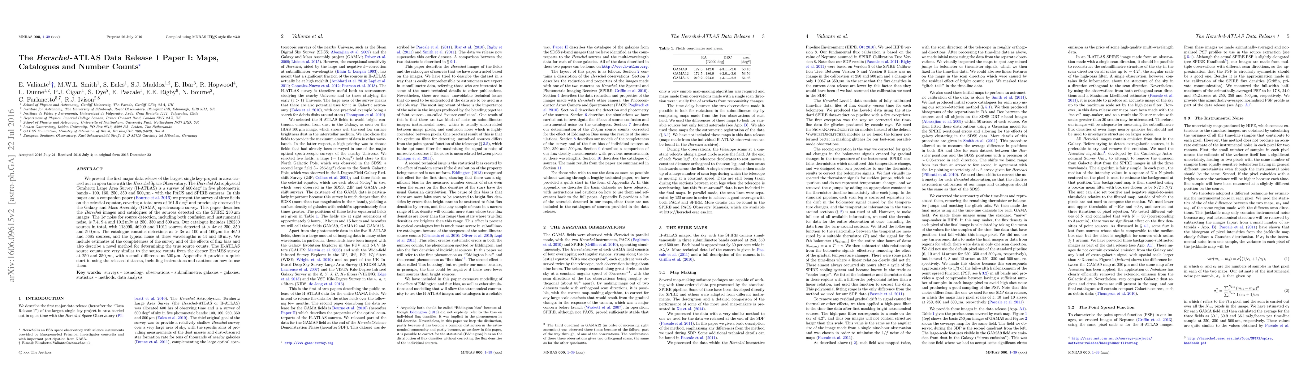 The Herschel-ATLAS Data Release 1 Paper I presents the first major data release from the Herschel Space Observatory, detailing the survey of three fields on the celestial equator using five photometric bands. The catalogue includes 120,230 detected sources, with detailed noise and completeness estimates, and a novel method for determining true source counts.
