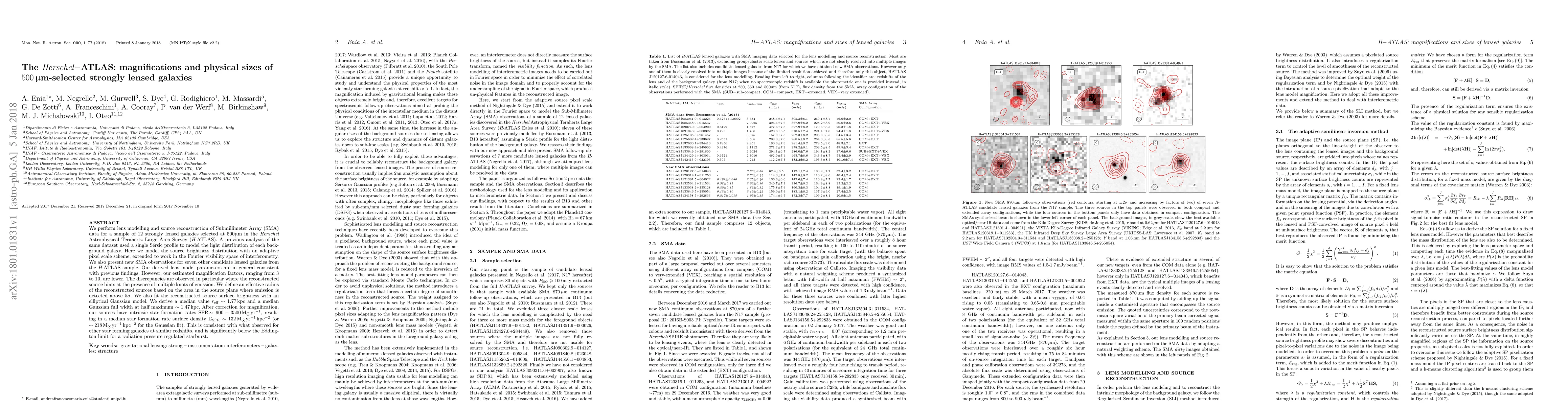 This paper models the brightness distribution of 12 strongly lensed galaxies selected from the Herschel Astrophysical Terahertz Large Area Survey (H-ATLAS) using an adaptive pixel scale scheme. The study finds lower magnification factors and larger effective radii compared to previous models, suggesting intrinsic star formation rates consistent with other star-forming galaxies at similar redshifts.