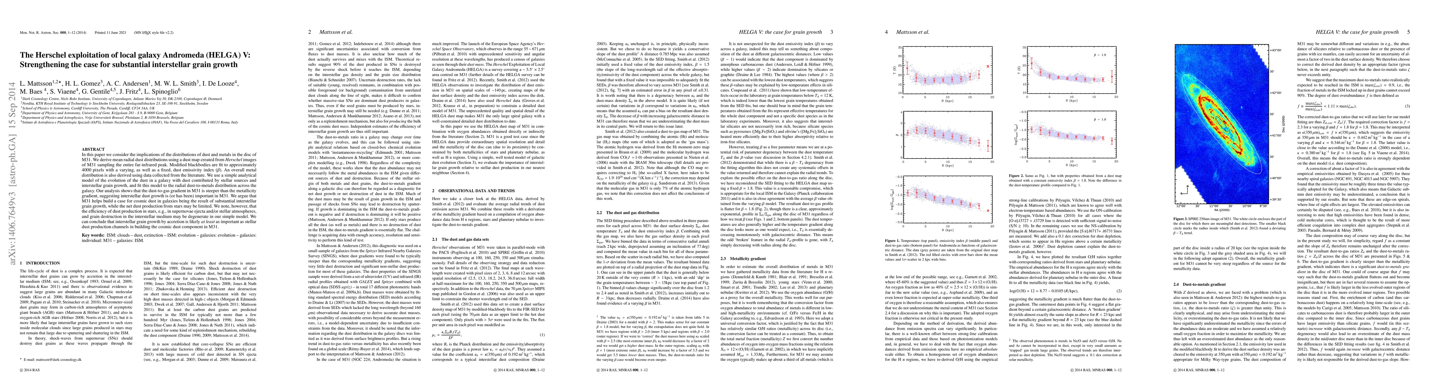 In this paper we consider the implications of the distributions of dust and metals in the disc of M31. We derive mean radial dust distributions using a dust map created from Herschel images of M31 sampling the entire far-infrared (FIR) peak. Modified blackbodies are fit to approximately 4000 pixels with a varying, as well as a fixed, dust emissivity index (beta). An overall metal distribution is also derived using data collected from the literature. We use a simple analytical model of the evolution of the dust in a galaxy with dust contributed by stellar sources and interstellar grain growth, and fit this model to the radial dust-to-metals distribution across the galaxy. Our analysis shows that the dust-to-gas gradient in M31 is steeper than the metallicity gradient, suggesting interstellar dust growth is (or has been) important in M31. We argue that M31 helps build a case for cosmic dust in galaxies being the result of substantial interstellar grain growth, while the net dust production from stars may be limited. We note, however, that the efficiency of dust production in stars, e.g., in supernovae (SNe) ejecta and/or stellar atmospheres, and grain destruction in the interstellar medium (ISM) may be degenerate in our simple model. We can conclude that interstellar grain growth by accretion is likely at least as important as stellar dust production channels in building the cosmic dust component in M31.