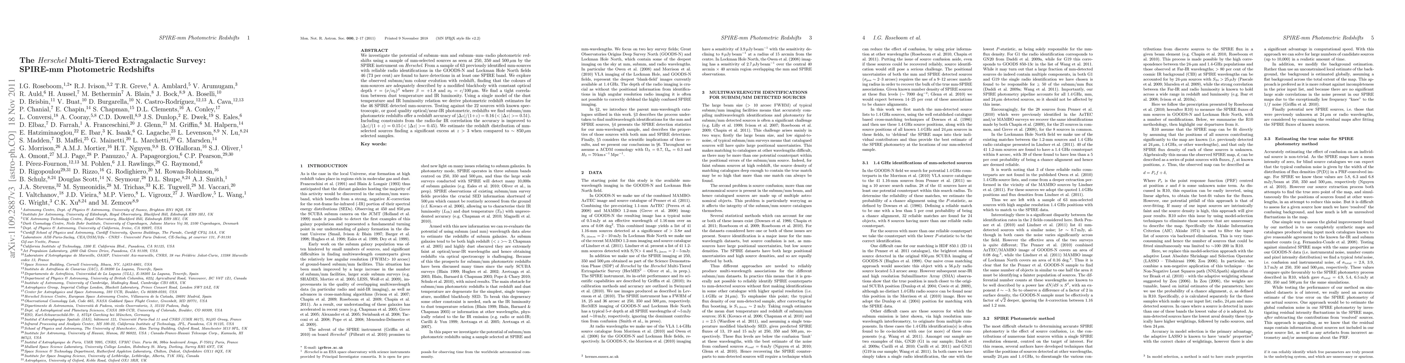 The Herschel Multi-Tiered Extragalactic Survey explores submm-mm and submm-radio photometric redshifts for mm-selected sources detected by SPIRE on Herschel. The study finds a tight correlation between dust temperature and IR luminosity, achieving photometric redshift accuracy of |z|/(1+z) = 0.16, which improves to 0.15 with radio-far IR constraints, and reveals a significant excess of sources at z > 3.