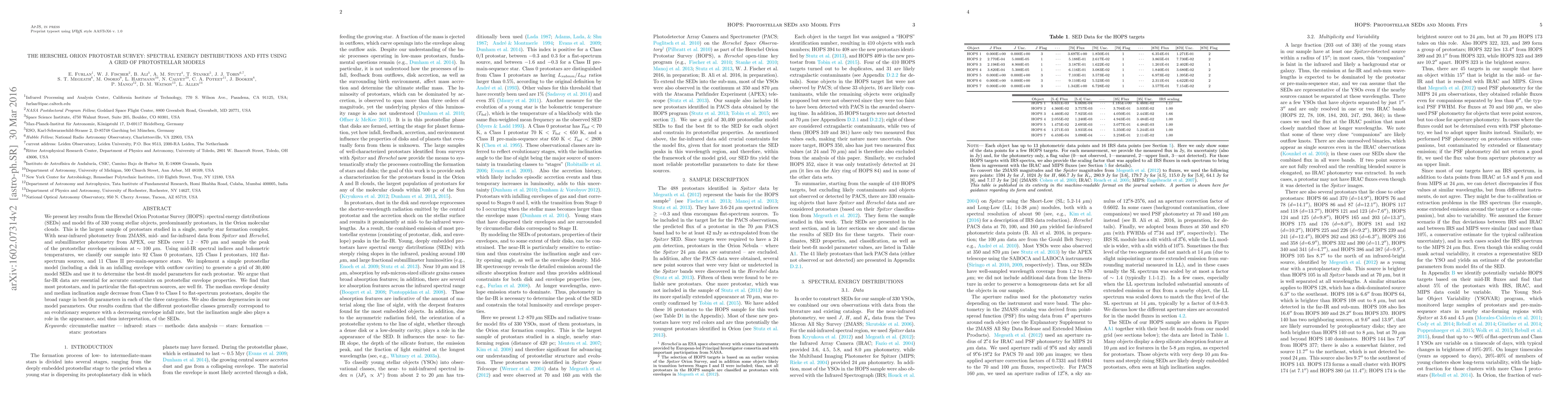 The Herschel Orion Protostar Survey (HOPS) provides spectral energy distributions (SEDs) and model fits for 330 young stellar objects in Orion, revealing an evolutionary sequence from Class 0 to Class I protostars and flat-spectrum sources, with far-IR data crucial for accurate envelope properties. The study finds decreasing envelope density and inclination angles across protostellar classes, highlighting the role of inclination in SED interpretation.