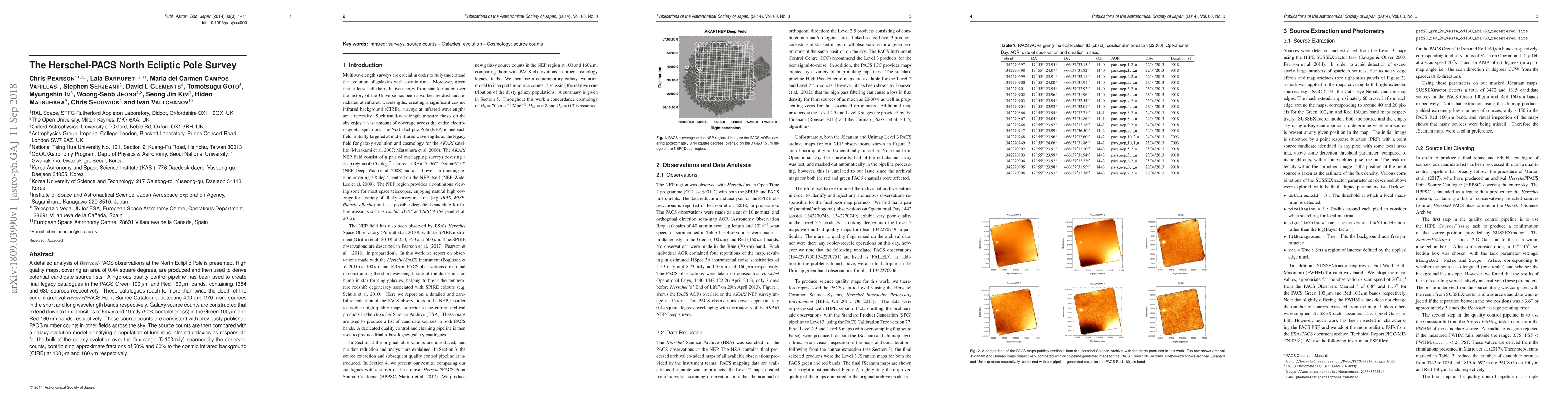 The Herschel-PACS North Ecliptic Pole Survey presents detailed observations and high-quality maps, resulting in new catalogues of 1384 and 630 sources in the 100 and 160 micron bands, respectively. The study identifies luminous infrared galaxies as a major contributor to cosmic infrared background evolution.
