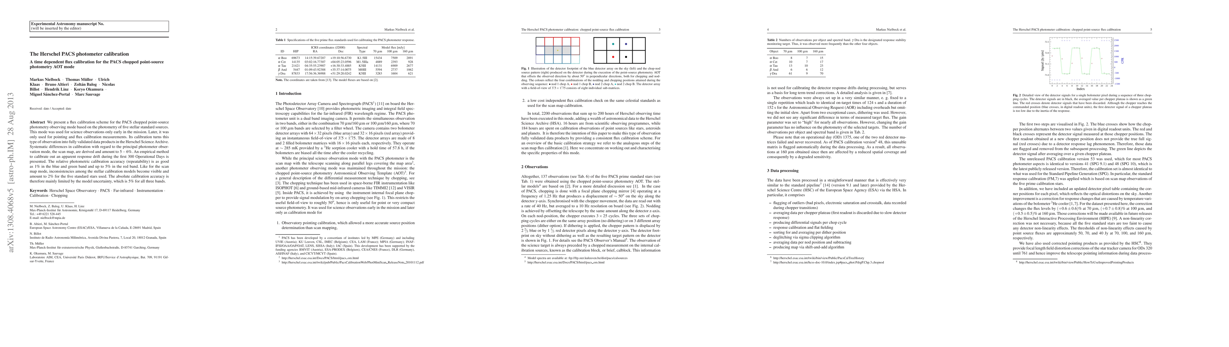 This paper presents a flux calibration scheme for the PACS photometer's chopped point-source photometry mode, achieving a relative calibration accuracy of 1% in blue and green bands, and up to 5% in the red band. The calibration addresses systematic differences and response drifts, improving data product validation in the Herschel Science Archive.