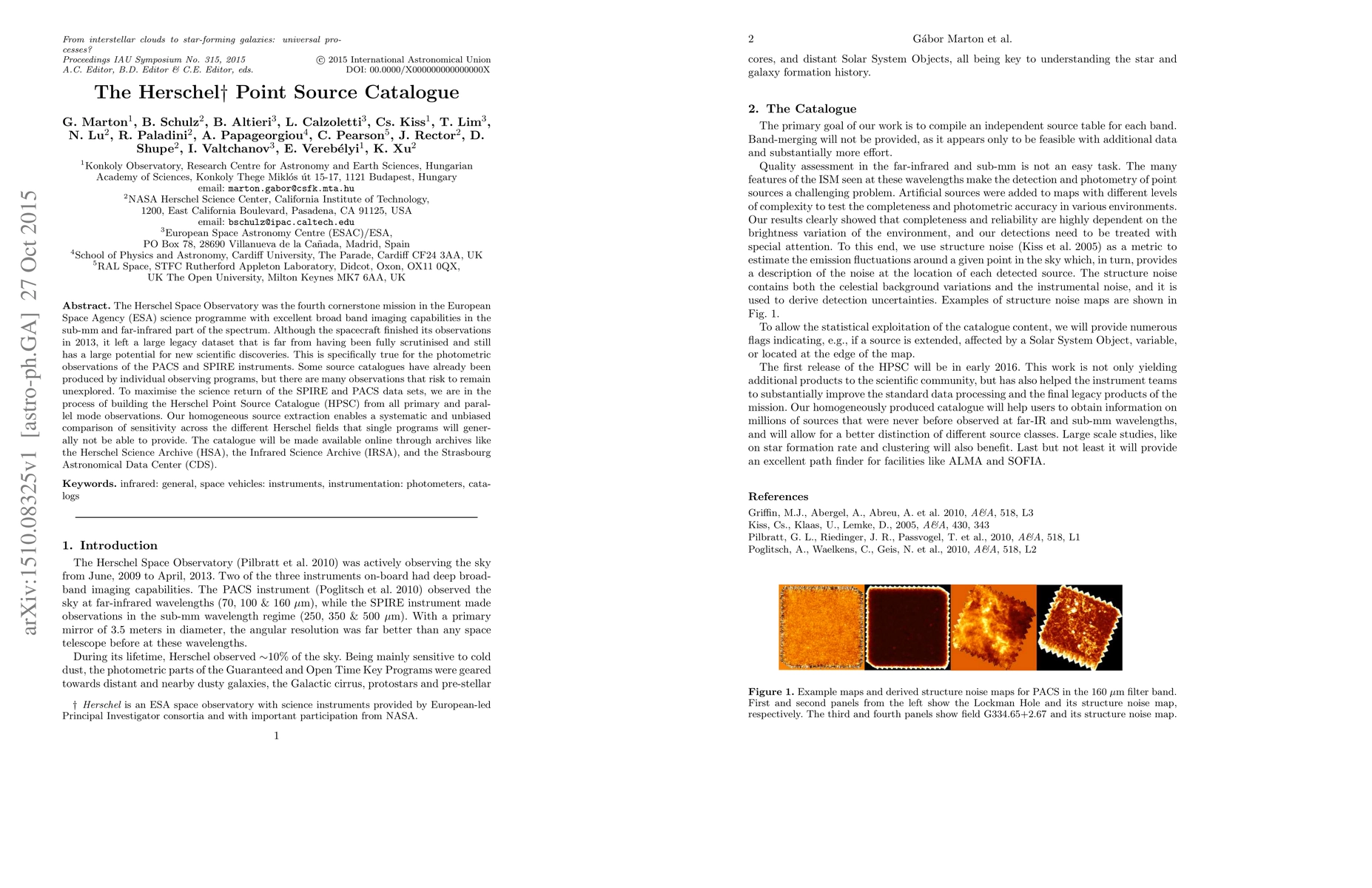 The Herschel Space Observatory's PACS and SPIRE instruments generated extensive sub-mm and far-infrared data, and the Herschel Point Source Catalogue (HPSC) aims to systematically extract and compare these observations for maximum scientific yield, to be released through major astronomical archives.