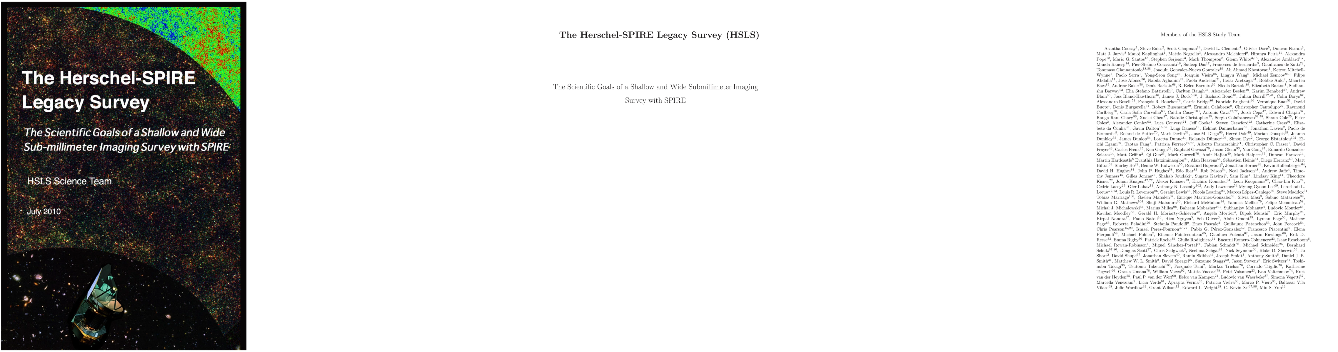 A large sub-mm survey with Herschel will enable many exciting science opportunities, especially in an era of wide-field optical and radio surveys and high resolution cosmic microwave background experiments. The Herschel-SPIRE Legacy Survey (HSLS), will lead to imaging data over 4000 sq. degrees at 250, 350, and 500 micron. Major Goals of HSLS are: (a) produce a catalog of 2.5 to 3 million galaxies down to 26, 27 and 33 mJy (50% completeness; 5 sigma confusion noise) at 250, 350 and 500 micron, respectively, in the southern hemisphere (3000 sq. degrees) and in an equatorial strip (1000 sq. degrees), areas which have extensive multi-wavelength coverage and are easily accessible from ALMA. Two thirds of the of the sources are expected to be at z > 1, one third at z > 2 and about a 1000 at z > 5. (b) Remove point source confusion in secondary anisotropy studies with Planck and ground-based CMB data. (c) Find at least 1200 strongly lensed bright sub-mm sources leading to a 2% test of general relativity. (d) Identify 200 proto-cluster regions at z of 2 and perform an unbiased study of the environmental dependence of star formation. (e) Perform an unbiased survey for star formation and dust at high Galactic latitude and make a census of debris disks and dust around AGB stars and white dwarfs.