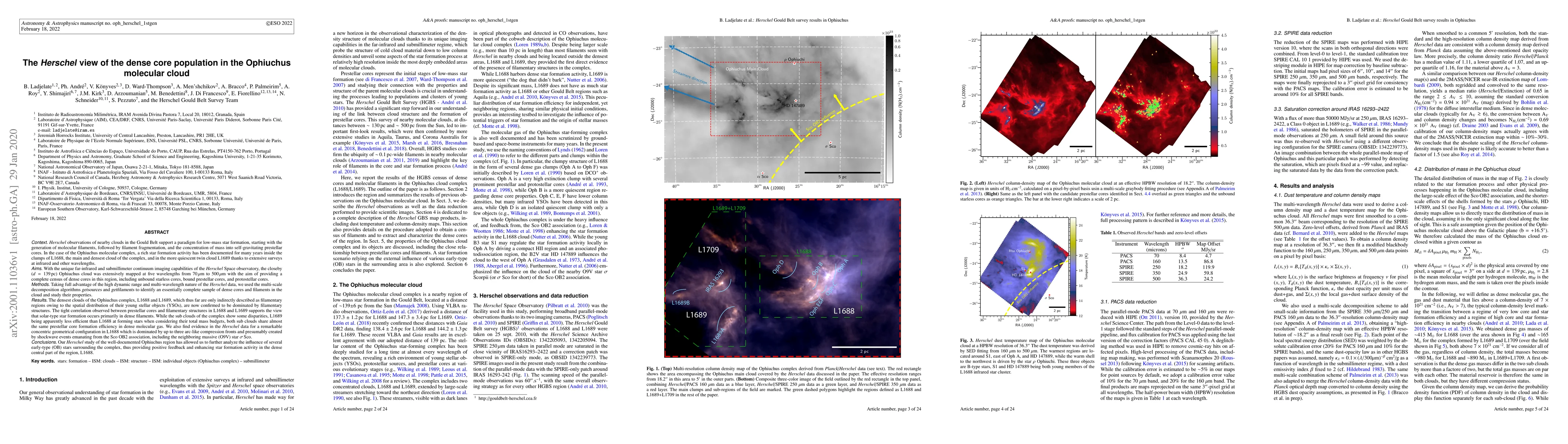 The Herschel Space Observatory mapped the Ophiuchus molecular cloud, revealing a population of dense cores and filamentary structures, supporting the paradigm of low-mass star formation in filaments. The densest regions, L1688 and L1689, show a strong correlation between prestellar cores and filamentary structures, indicating that star formation predominantly occurs in these dense filaments.