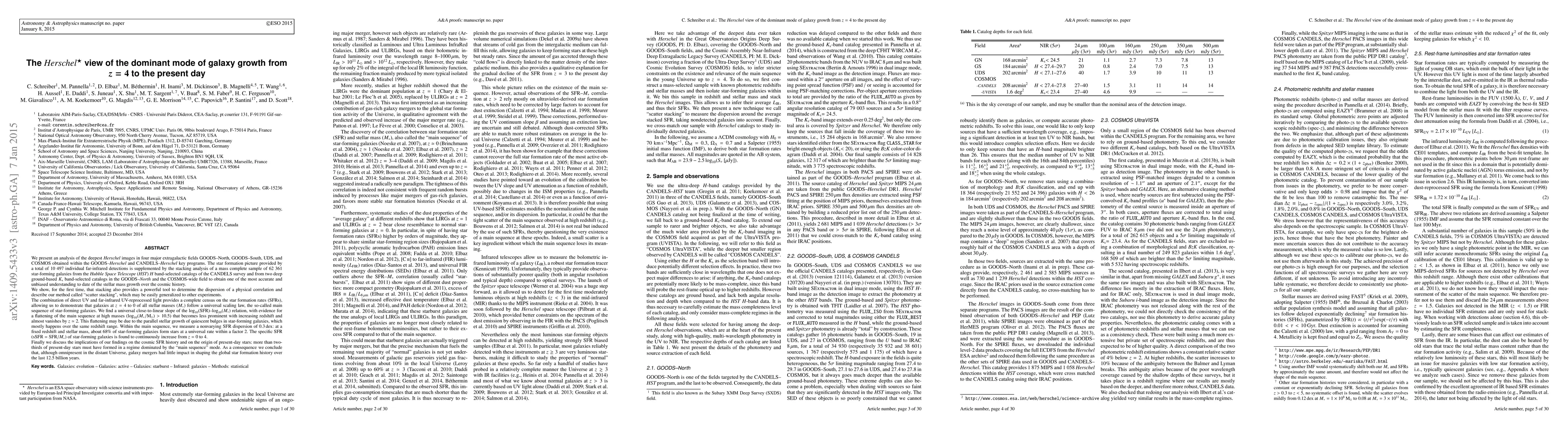 This study uses Herschel data to analyze galaxy growth from z=4 to the present day, revealing a universal scaling law for star-forming galaxies known as the main sequence. The findings suggest that most stars formed through this main sequence mode, with galaxy mergers having minimal impact on the global star formation history.