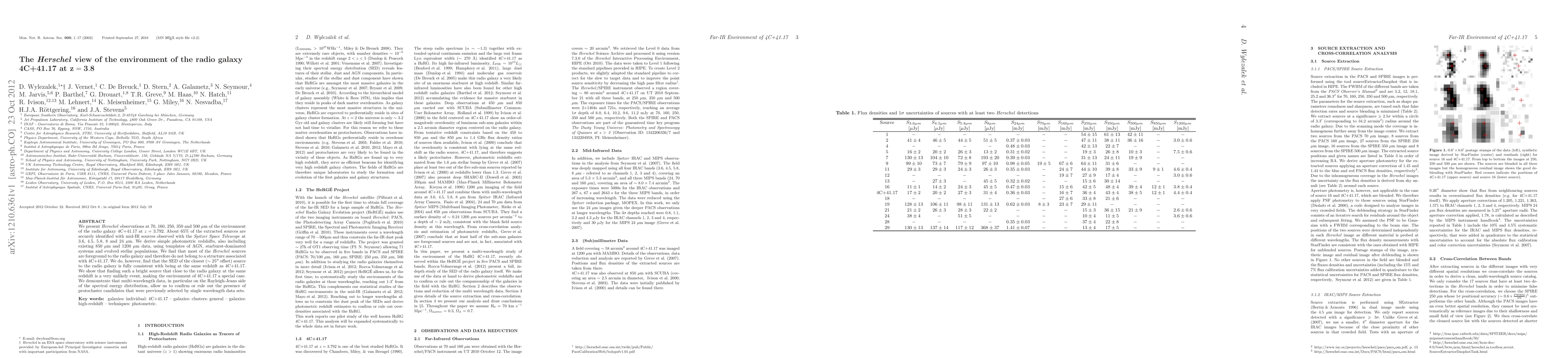 This paper uses Herschel observations to study the environment of the radio galaxy 4C+41.17 at z = 3.792, revealing that most Herschel sources are foreground and unrelated to the galaxy. However, a nearby source at the same redshift suggests a unique environment for 4C+41.17, confirmed by multi-wavelength data.