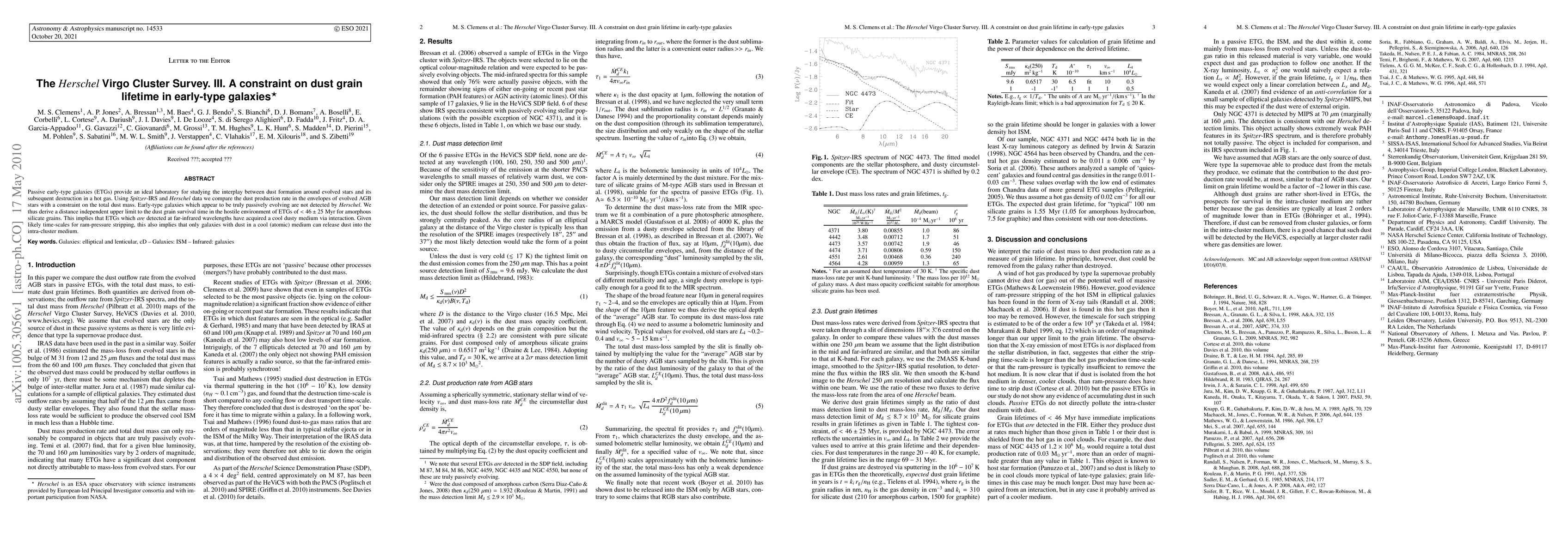 A study using Spitzer-IRS and Herschel data found that early-type galaxies lack dust in their envelopes, suggesting dust grain lifetimes of less than 46 million years, implying only galaxies with cool dusty media can release dust into the intra-cluster medium.