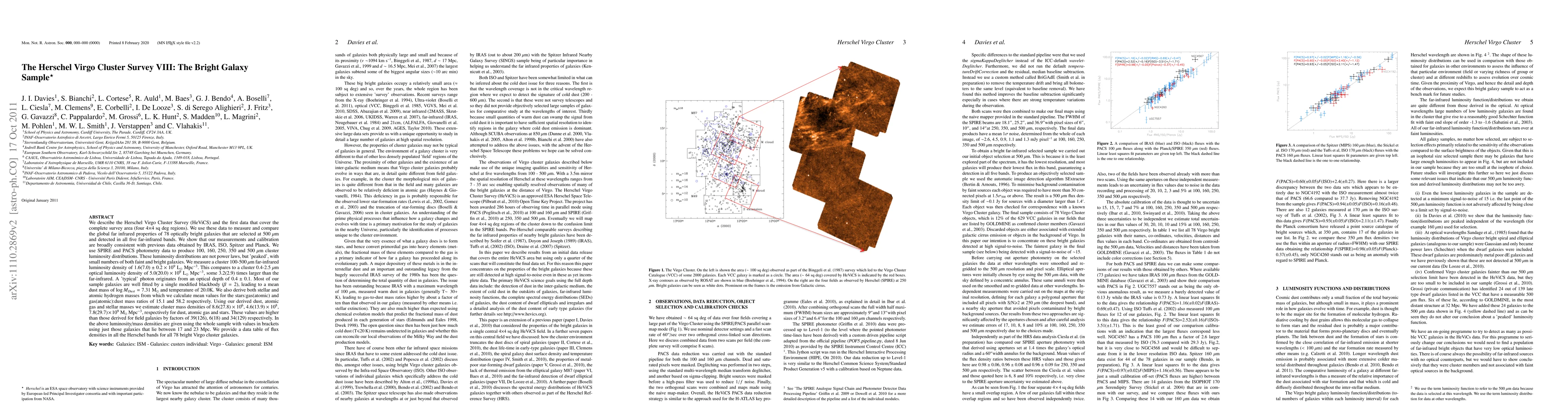 The Herschel Virgo Cluster Survey (HeViCS) measures the far-infrared properties of 78 bright galaxies in the Virgo cluster, revealing a non-power-law luminosity distribution and higher far-infrared luminosity density compared to optical. The study finds higher dust, atomic gas, and stellar mass densities in cluster galaxies than in field galaxies.