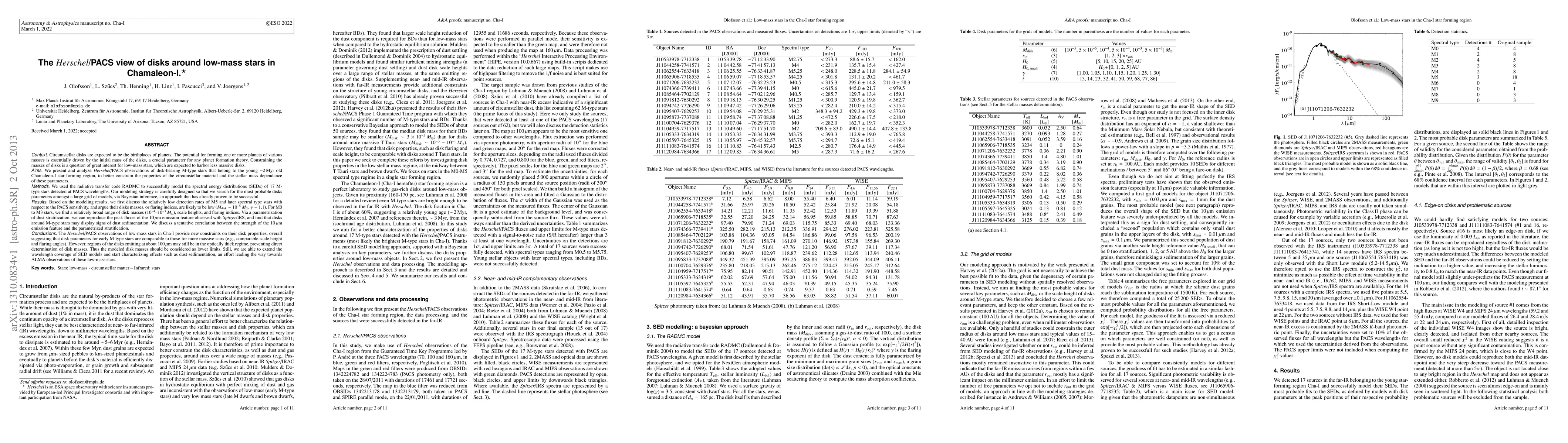 The study modeled the SEDs of 17 disk-bearing low-mass M-type stars in Chamaleon-I using Herschel/PACS observations, employing the radiative transfer code RADMC-3D to analyze disk properties such as mass, scale height, and flaring indices.