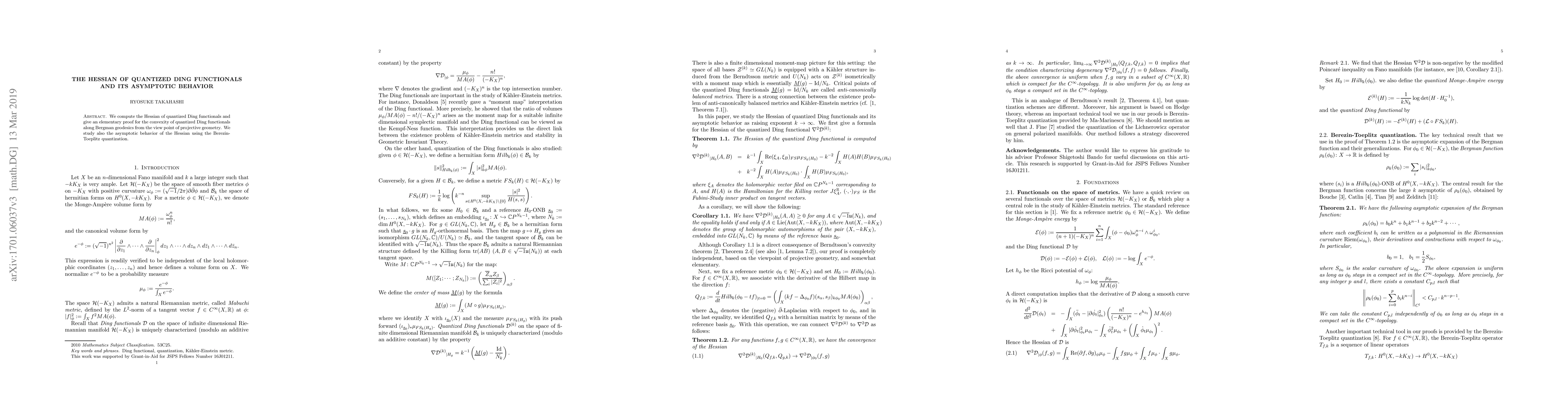 We compute the Hessian of quantized Ding functionals and give an elementary proof for the convexity of quantized Ding functionals along Bergman geodesics from the view point of projective geometry. We study also the asymptotic behavior of the Hessian using the Berezin-Toeplitz quantization.
