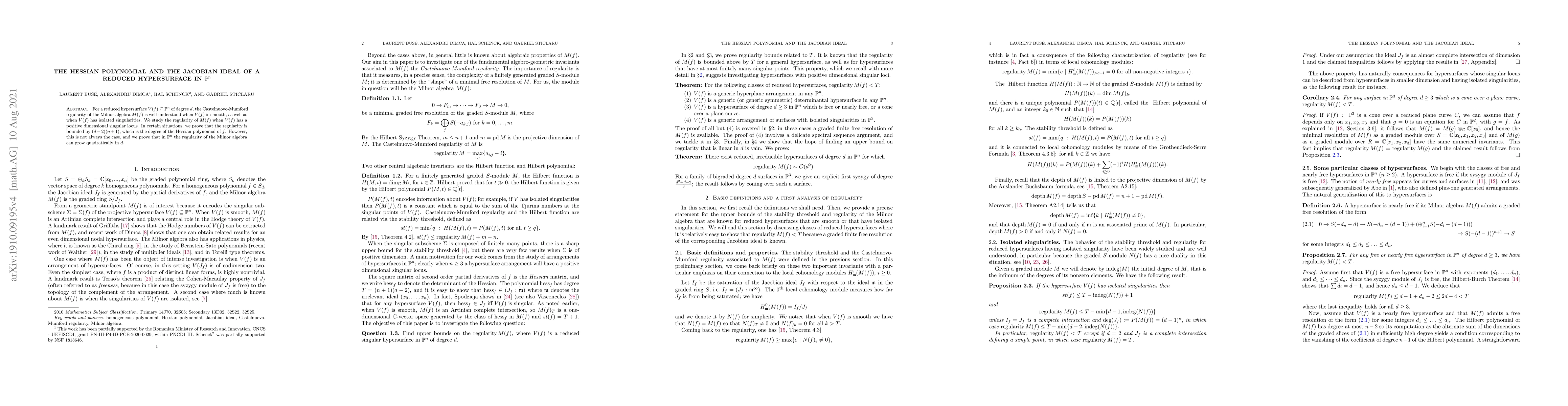 This paper investigates the Castelnuovo-Mumford regularity of the Milnor algebra for reduced hypersurfaces in projective space with positive dimensional singularities. It establishes a bound for the regularity in terms of the degree of the Hessian polynomial, though it also demonstrates cases where the regularity can grow quadratically with the degree of the hypersurface.