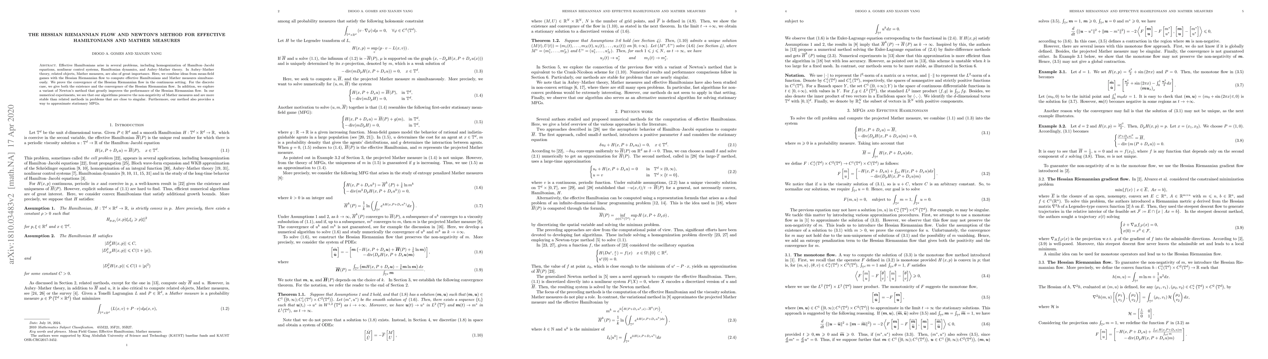 This paper combines Hessian Riemannian flow and Newton's method to compute effective Hamiltonians and Mather measures, proving convergence in both continuous and discrete settings. The proposed algorithms show improved stability and non-negativity preservation of Mather measures, especially near singularities.