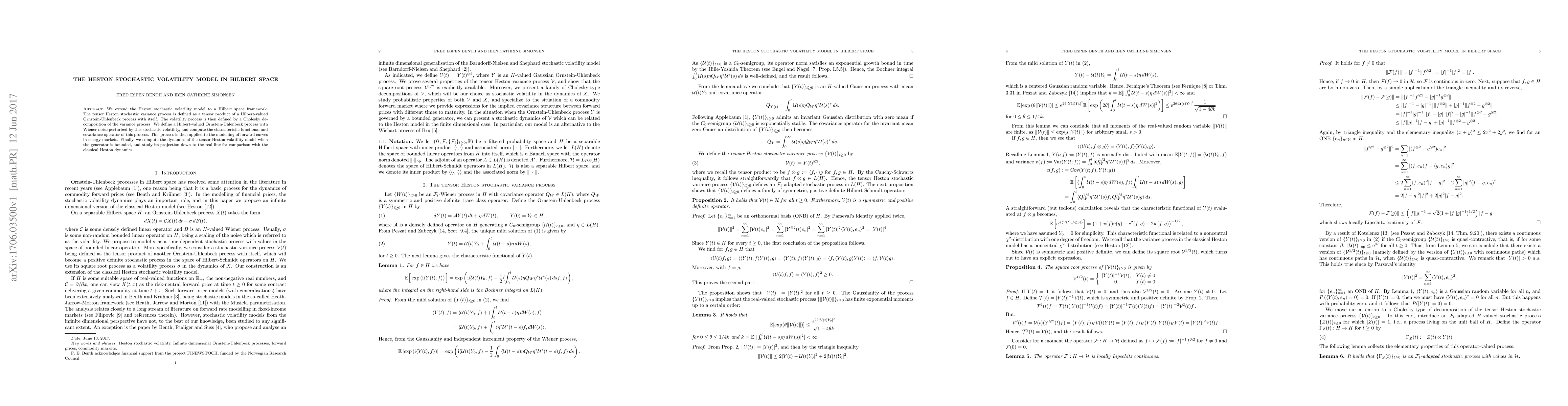 The research extends the Heston stochastic volatility model to a Hilbert space framework, defining a tensor Heston stochastic variance process as a tensor product of a Hilbert-valued Ornstein-Uhlenbeck process with itself. The volatility process is then defined via a Cholesky decomposition of the variance process.