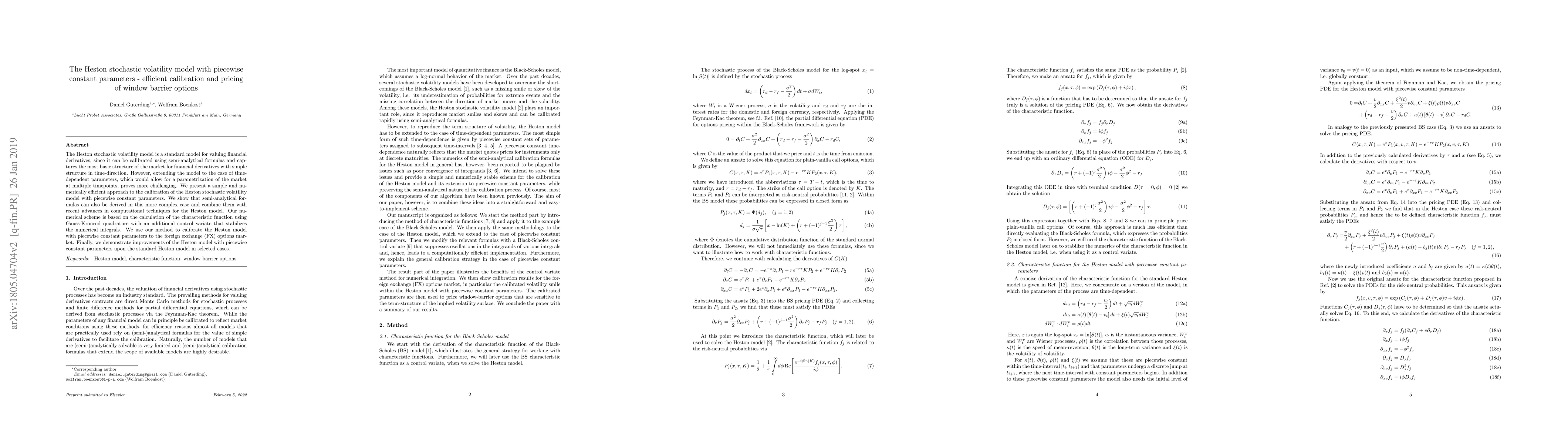 This paper presents an efficient calibration and pricing method for the Heston stochastic volatility model with piecewise constant parameters, using semi-analytical formulas and advanced numerical techniques. The method improves upon the standard Heston model, particularly in the calibration to the foreign exchange options market.