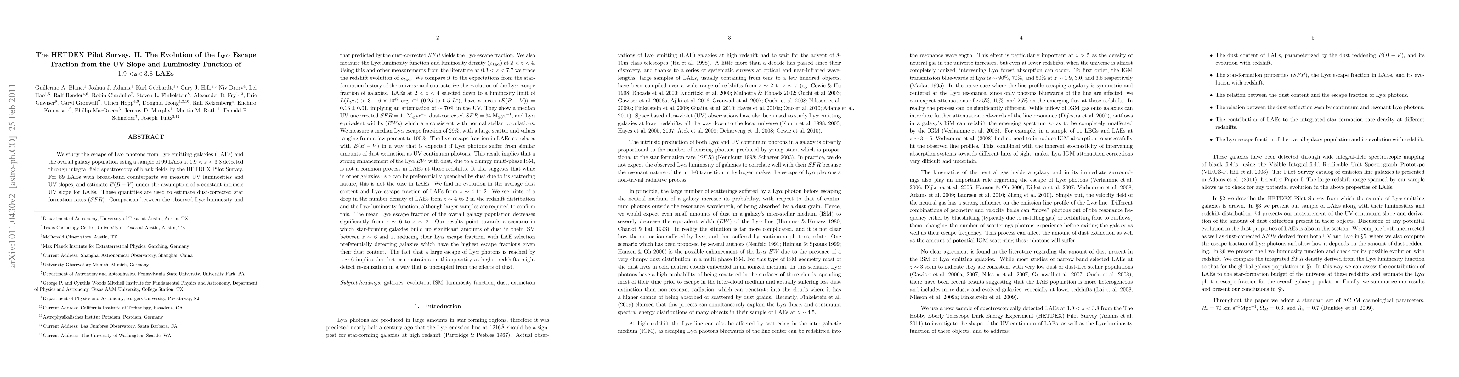 This paper investigates the Ly-alpha photon escape fraction from Ly-alpha emitting galaxies (LAEs) at redshifts 1.9<z<3.8 using the HETDEX Pilot Survey data. It estimates the dust-corrected star formation rate and Ly-alpha escape fraction based on UV luminosity and slope measurements, and traces the evolution of the Ly-alpha luminosity density across a wide redshift range to characterize the Ly-alpha escape fraction's evolution in the overall galaxy population.