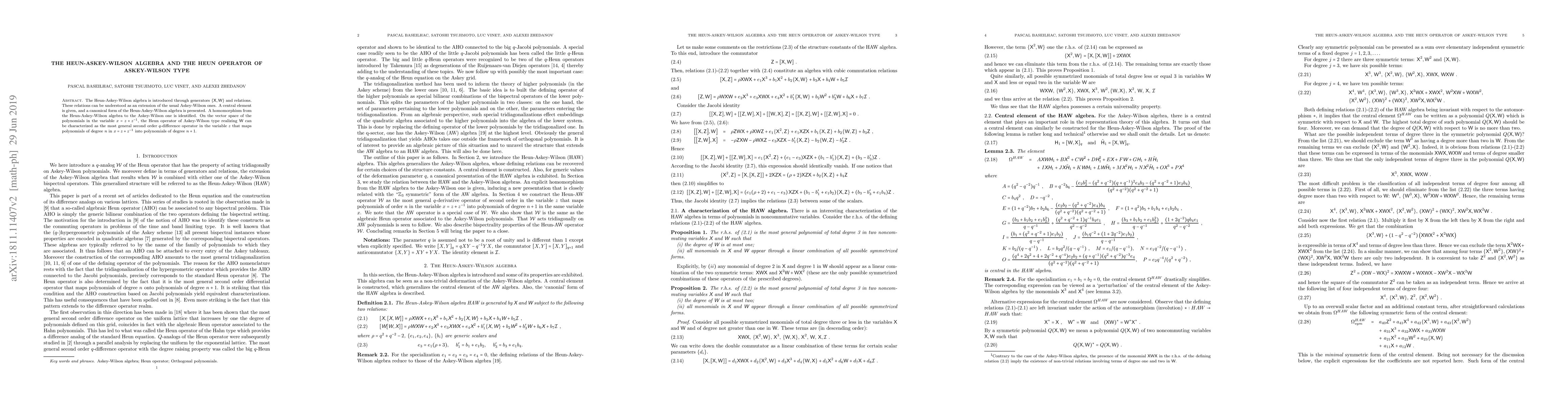 The research introduces the Heun-Askey-Wilson (HAW) algebra and its Heun operator of Askey-Wilson type, extending the Askey-Wilson algebra with Heun-type extensions and exploring its properties and relations.