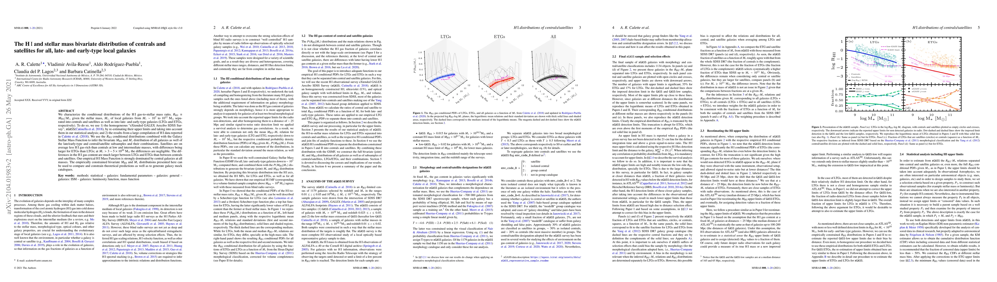 We characterize the conditional distributions of the HI gas-to-stellar mass ratio, $R_{HI}\equiv M_{HI}/M_{\ast}$, given the stellar mass, $M_{\ast}$, of local galaxies from $M_{\ast}\sim 10^7$ to $10^{12}$ $M_{\odot}$ separated into centrals and satellites as well as into late- and early-type galaxies (LTGs and ETGs, respectively). To do so, we use (1) the homogeneous "eXtended GALEX Arecibo SDSS Survey", xGASS (Catinella et al. 2018), by re-estimating their upper limits and taking into account them in our statistical analysis; and (2) the results from a large compilation of HI data reported in Calette et al. (2018). We use the $R_{HI}$ conditional distributions combined with the Galaxy Stellar Mass Function to infer the bivariate $M_{HI}$ and $M_{\ast}$ distribution of all galaxies as well of the late/early-type and central/satellite subsamples and their combinations. Satellites are on average less HI gas-rich than centrals at low and intermediate masses, with differences being larger for ETGs than LTGs; at $M_{\ast}>3-5\times 10^{10}$ $M_{\odot}$ the differences are negligible. The differences in the HI gas content are much larger between LTGs and ETGs than between centrals and satellites. Our empirical HI Mass Function is strongly dominated by central galaxies at all masses. The empirically constrained bivariate $M_{HI}$ and $M_{\ast}$ distributions presented here can be used to compare and constrain theoretical predictions as well as to generate galaxy mock catalogues.