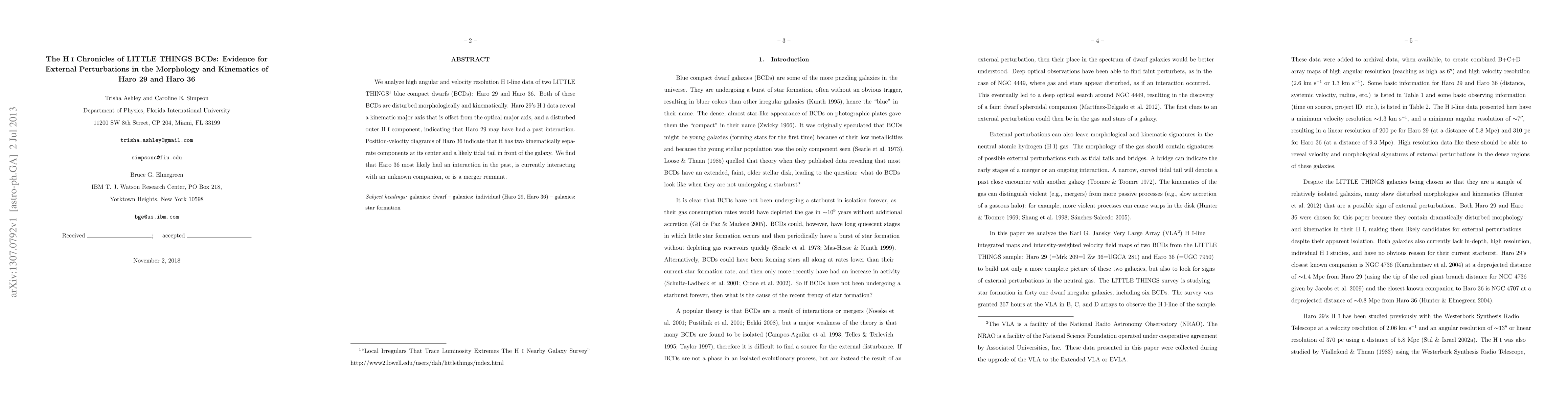 We analyze high angular and velocity resolution HI-line data of two LITTLE THINGS (1) blue compact dwarfs (BCDs): Haro 29 and Haro 36. Both of these BCDs are disturbed morphologically and kinematically. Haro 29's HI data reveal a kinematic major axis that is offset from the optical major axis, and a disturbed outer HI component, indicating that Haro 29 may have had a past interaction. Position-velocity diagrams of Haro 36 indicate that it has two kinematically separate components at its center and a likely tidal tail in front of the galaxy. We find that Haro 36 most likely had an interaction in the past, is currently interacting with an unknown companion, or is a merger remnant. (1) "Local Irregulars That Trace Luminosity Extremes The HI Nearby Galaxy Survey" http://www2.lowell.edu/users/dah/littlethings/index.html