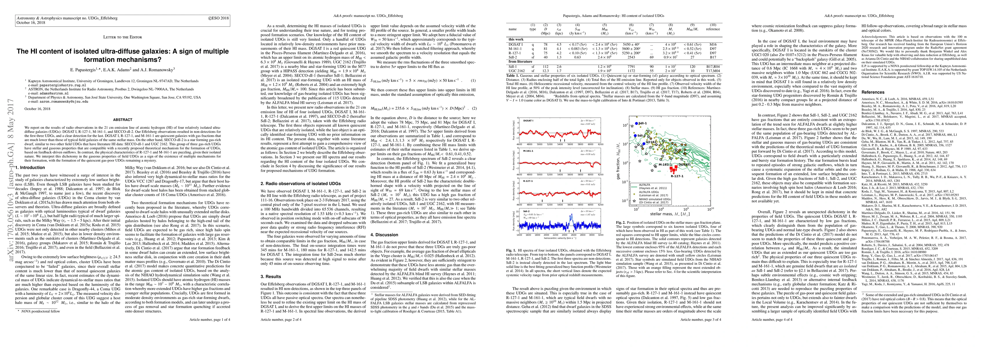 We report on the results of radio observations in the 21 cm emission line of atomic hydrogen (HI) of four relatively isolated ultra-diffuse galaxies (UDGs): DGSAT I, R-127-1, M-161-1, and SECCO-dI-2. Our Effelsberg observations resulted in non-detections for the first three UDGs, and a clear detection for the last. DGSAT I, R-127-1, and M-161-1 are quiescent galaxies with gas fractions that are much lower than those of typical field galaxies of the same stellar mass. On the other hand, SECCO-dI-2 is a star forming gas-rich dwarf, similar to two other field UDGs that have literature HI data: SECCO-dI-1 and UGC 2162. This group of three gas-rich UDGs have stellar and gaseous properties that are compatible with a recently proposed theoretical mechanism for the formation of UDGs, based on feedback-driven outflows. In contrast, the physical characteristics of R-127-1 and M-161-1 are puzzling, given their isolated nature. We interpret this dichotomy in the gaseous properties of field UDGs as a sign of the existence of multiple mechanisms for their formation, with the formation of the quiescent gas-poor UDGs remaining a mystery.