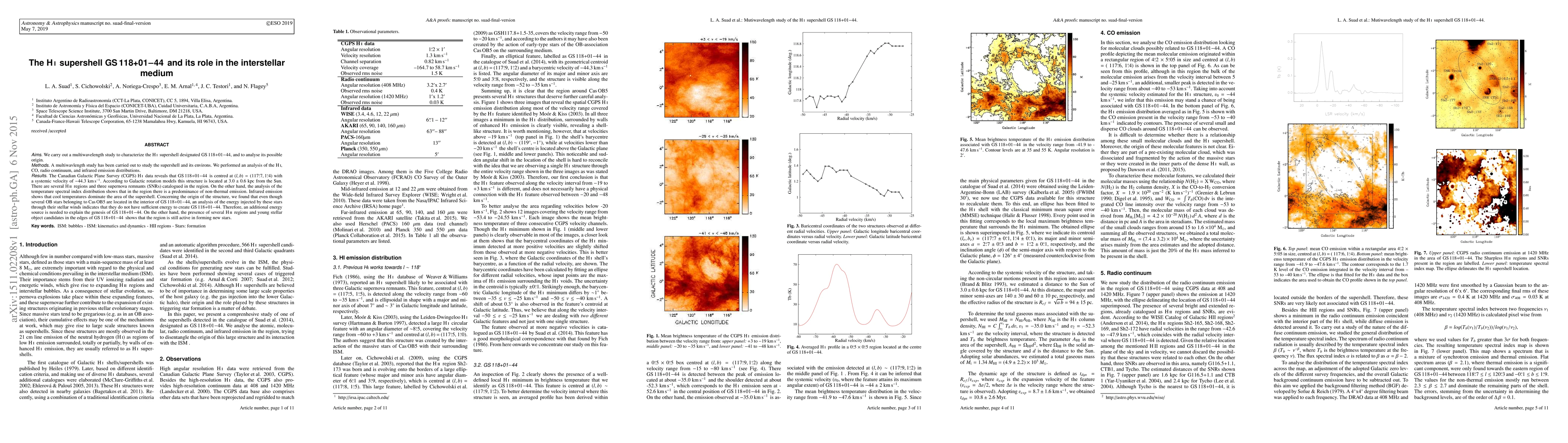 We carry out a multiwavelength study to characterize the HI supershell designated GS 118+01-44, and to analyse its possible origin. A multiwavlength study has been carried out to study the supershell and its environs. We performed an analysis of the HI, CO, radio continuum, and infrared emission distributions. The Canadian Galactic Plane Survey (CGPS) HI data reveals that GS 118+01-44 is centred at (l, b) = (117.7, 1.4) with a systemic velocity of -44.3 km/s. According to Galactic rotation models this structure is located at 3.0 +- 0.6 kpc from the Sun. There are several HII regions and three supernova remnants (SNRs) catalogued in the region. On the other hand, the analysis of the temperature spectral index distribution shows that in the region there is a predominance of non-thermal emission. Infrared emission shows that cool temperatures dominate the area of the supershell. Concerning the origin of the structure, we found that even though several OB stars belonging to Cas OB5 are located in the interior of GS 118+01-44, an analysis of the energy injected by these stars through their stellar winds indicates that they do not have sufficient energy to create GS 118+01-44. Therefore, an additional energy source is needed to explain the genesis of GS 118+01-44. On the other hand, the presence of several HII regions and young stellar object candidates in the edges of GS 118+01-44 shows that the region is still active in forming new stars.