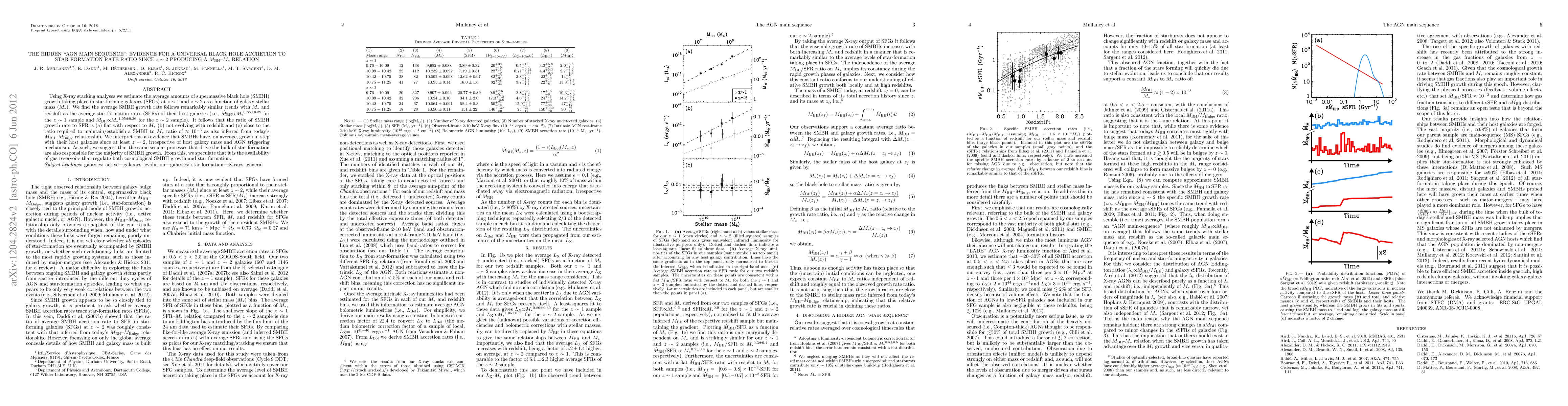 This paper uses X-ray stacking to reveal that supermassive black hole (SMBH) growth correlates strongly with star-formation rates in galaxies since z~2, suggesting a universal accretion to star-formation ratio. The study finds that the SMBH growth rate scales similarly with galaxy stellar mass and remains consistent across redshifts, indicating that SMBHs and stars have grown in tandem since at least z~2.