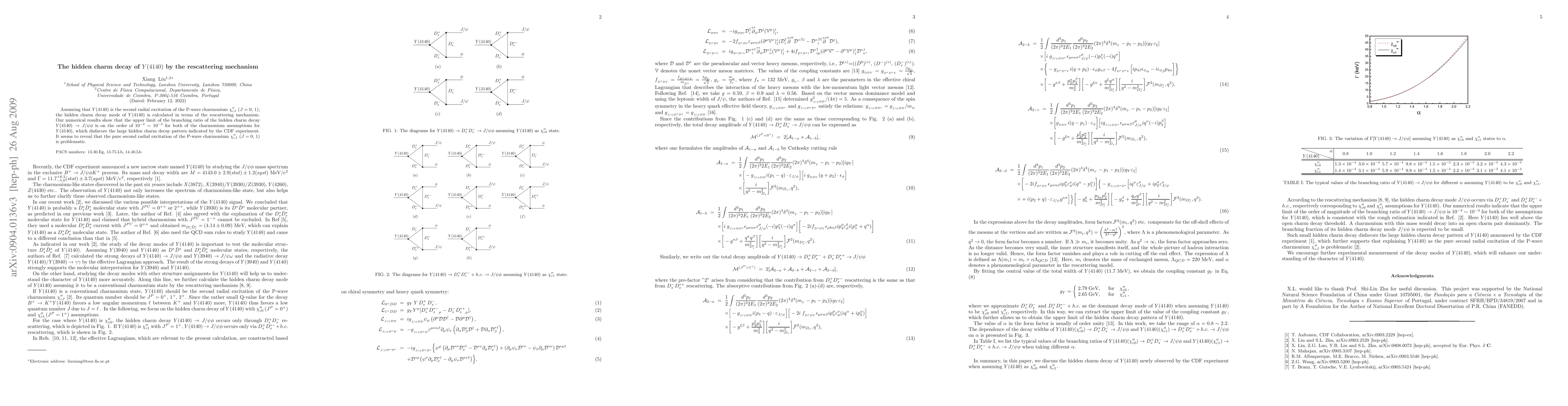 Assuming that Y(4140) is the second radial excitation of the P-wave charmonium $\chi_{cJ}^{\prime\prime}$ ($J=0, 1$), the hidden charm decay mode of Y(4140) is calculated in terms of the rescattering mechanism. Our numerical results show that the upper limit of the branching ratio of the hidden charm decay $Y(4140)\to J/\psi\phi$ is on the order of $10^{-4}\sim 10^{-3}$ for both of the charmonium assumptions for Y(4140), which disfavors the large hidden charm decay pattern indicated by the CDF experiment. It seems to reveal that the pure second radial excitation of the P-wave charmonium $\chi_{cJ}^{\prime\prime}$ ($J=0, 1$) is problematic.