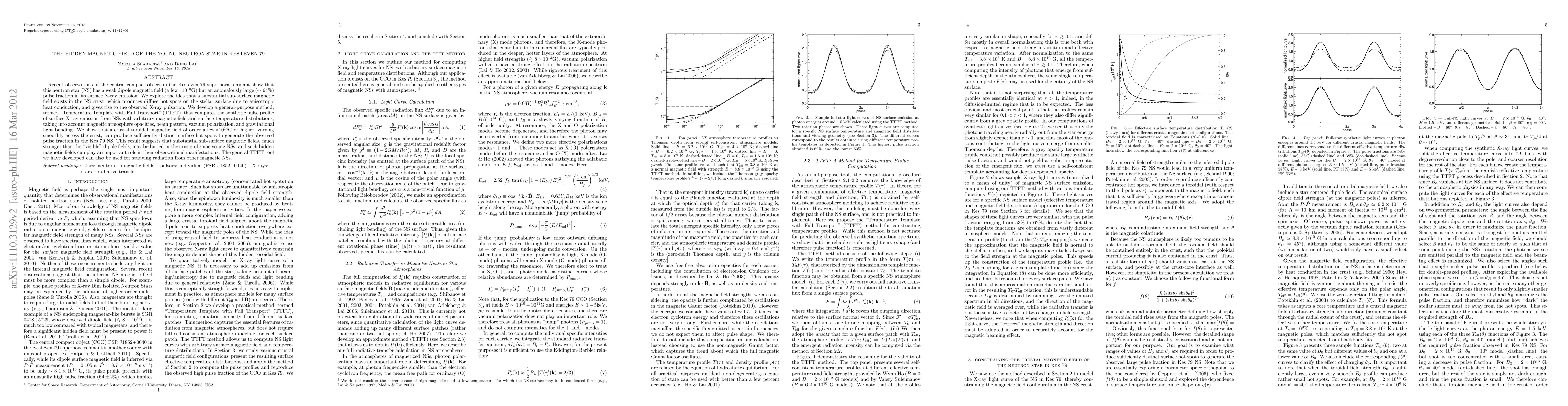 Recent observations of the central compact object in the Kesteven 79 supernova remnant show that this neutron star (NS) has a weak dipole magnetic field (a few x 10^{10} G) but an anomalously large (~ 64%) pulse fraction in its surface X-ray emission. We explore the idea that a substantial sub-surface magnetic field exists in the NS crust, which produces diffuse hot spots on the stellar surface due to anisotropic heat conduction, and gives rise to the observed X-ray pulsation. We develop a general-purpose method, termed "Temperature Template with Full Transport" (TTFT), that computes the synthetic pulse profile of surface X-ray emission from NSs with arbitrary magnetic field and surface temperature distributions, taking into account magnetic atmosphere opacities, beam pattern, vacuum polarization, and gravitational light bending. We show that a crustal toroidal magnetic field of order a few x 10^{14} G or higher, varying smoothly across the crust, can produce sufficiently distinct surface hot spots to generate the observed pulse fraction in the Kes 79 NS. This result suggests that substantial sub-surface magnetic fields, much stronger than the "visible" dipole fields, may be buried in the crusts of some young NSs, and such hidden magnetic fields can play an important role in their observational manifestations. The general TTFT tool we have developed can also be used for studying radiation from other magnetic NSs.